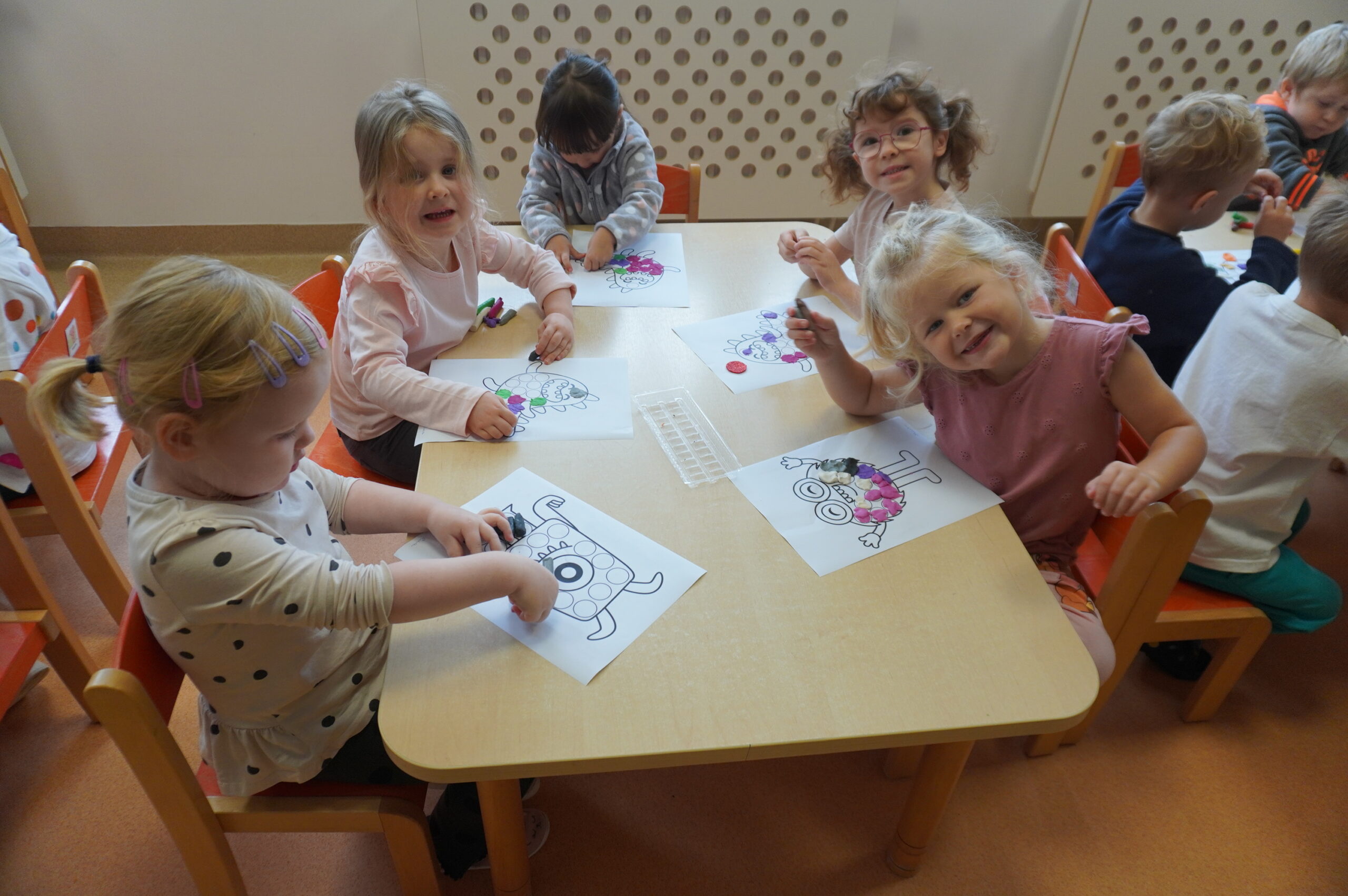 Nasze przedszkolaki obchodziły DZIEŃ KROPKI przez kilka dni. Każda Pani miała inne pomysły, ale w każdej grupie zabawy były fantastyczne. Nawet nasze najmłodsze przedszkolaczki świetnie poradziły sobie z kropeczkowym zadaniem. To były bardzo kolorowe dni.
