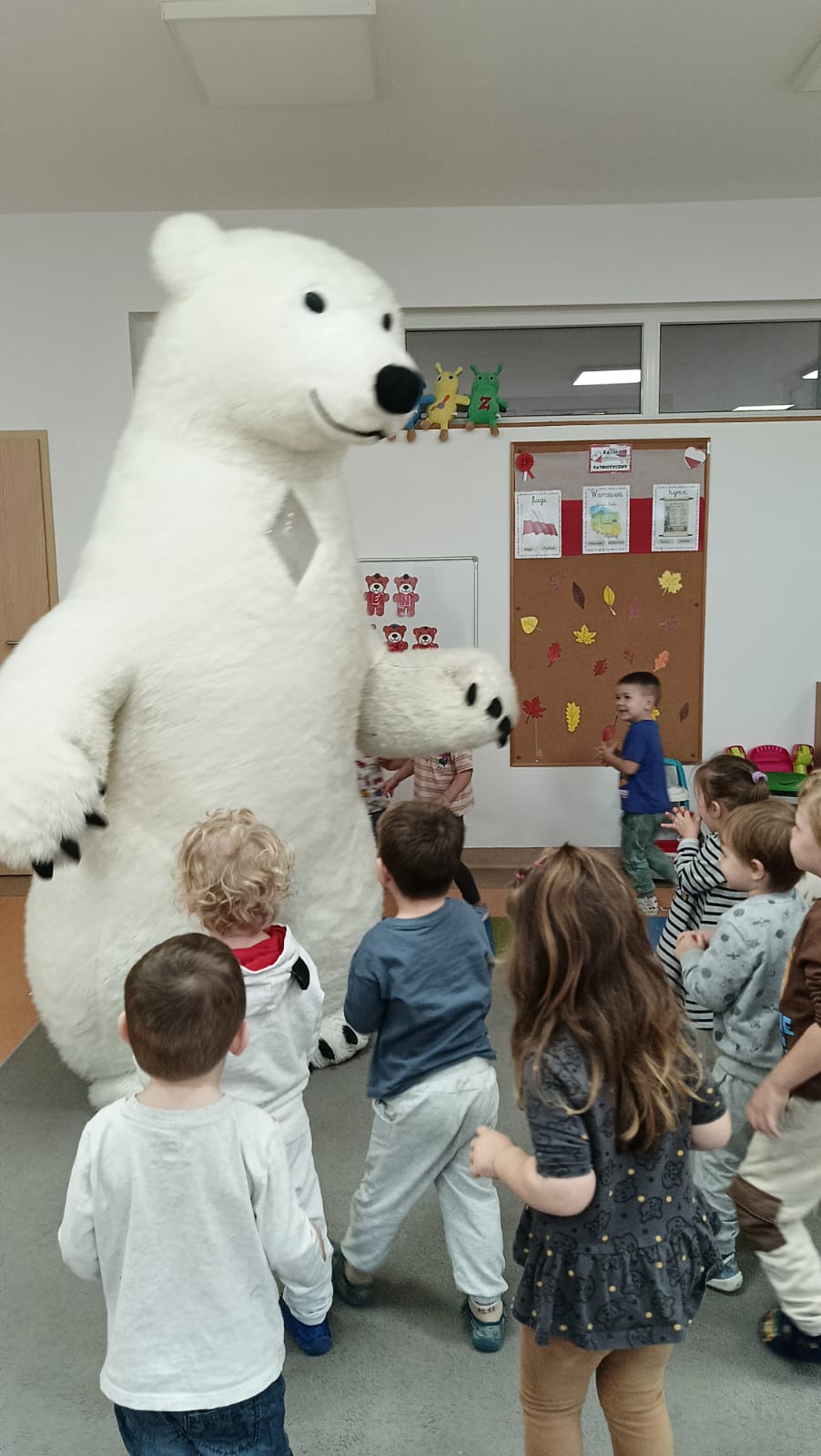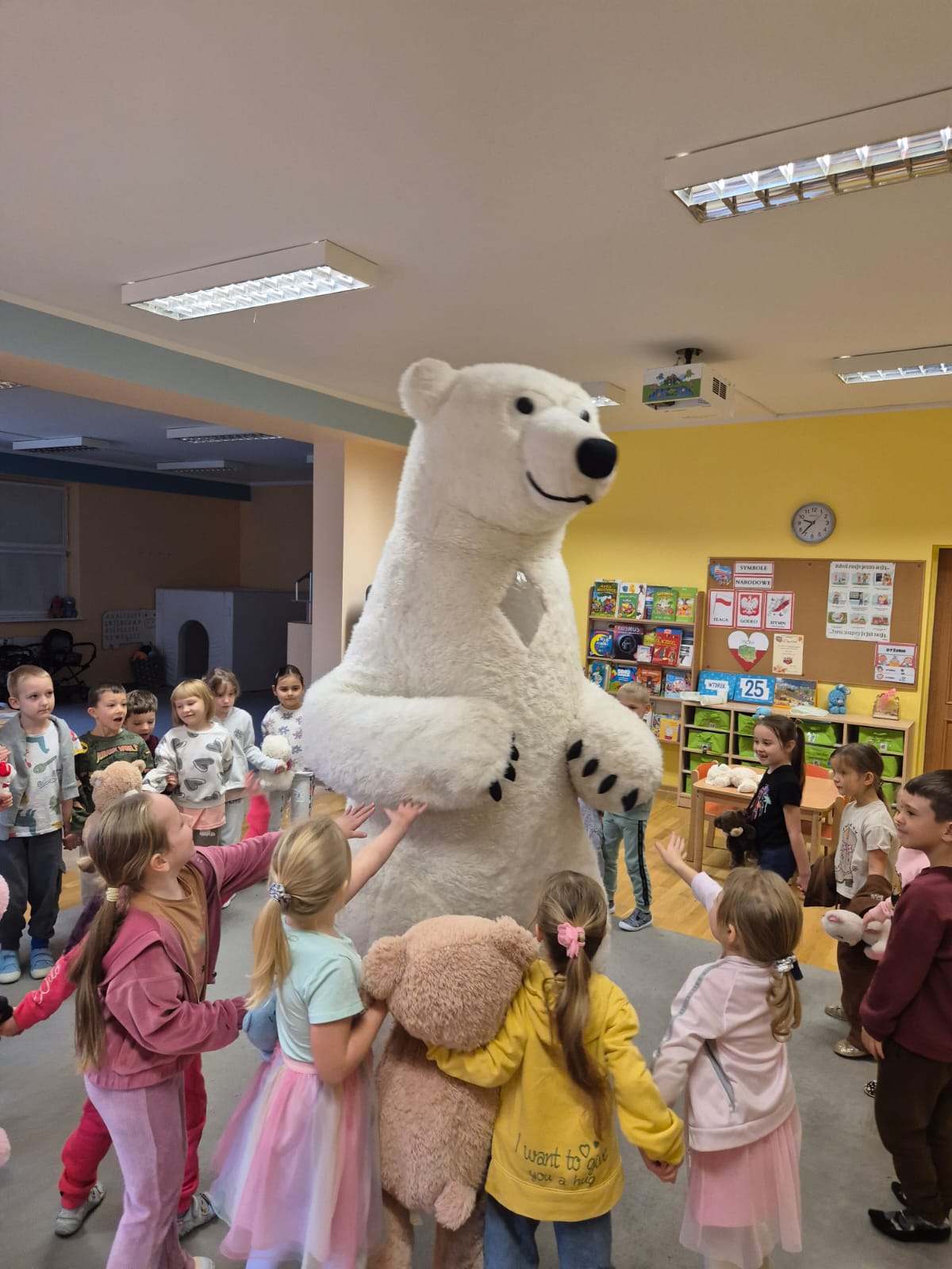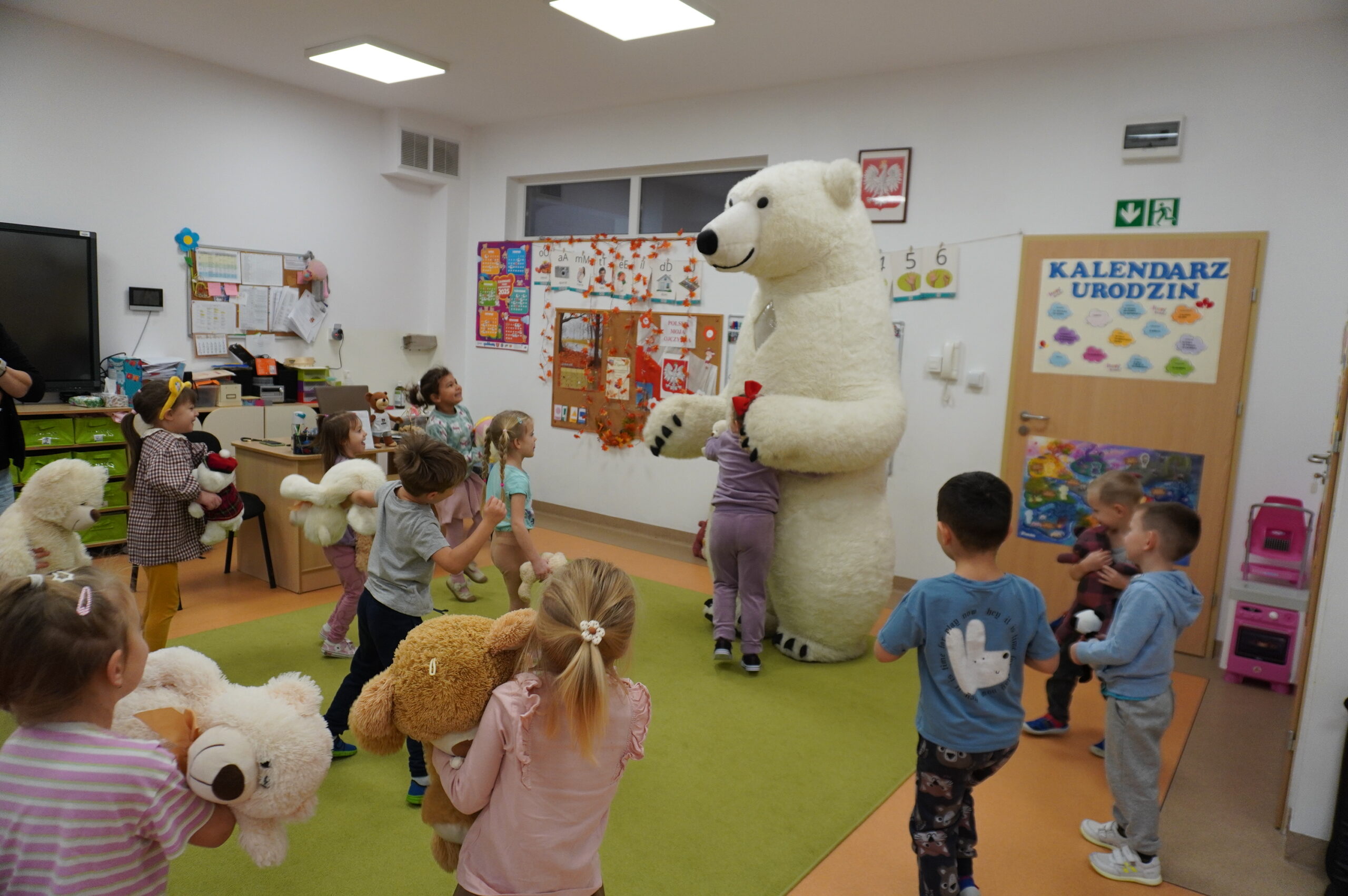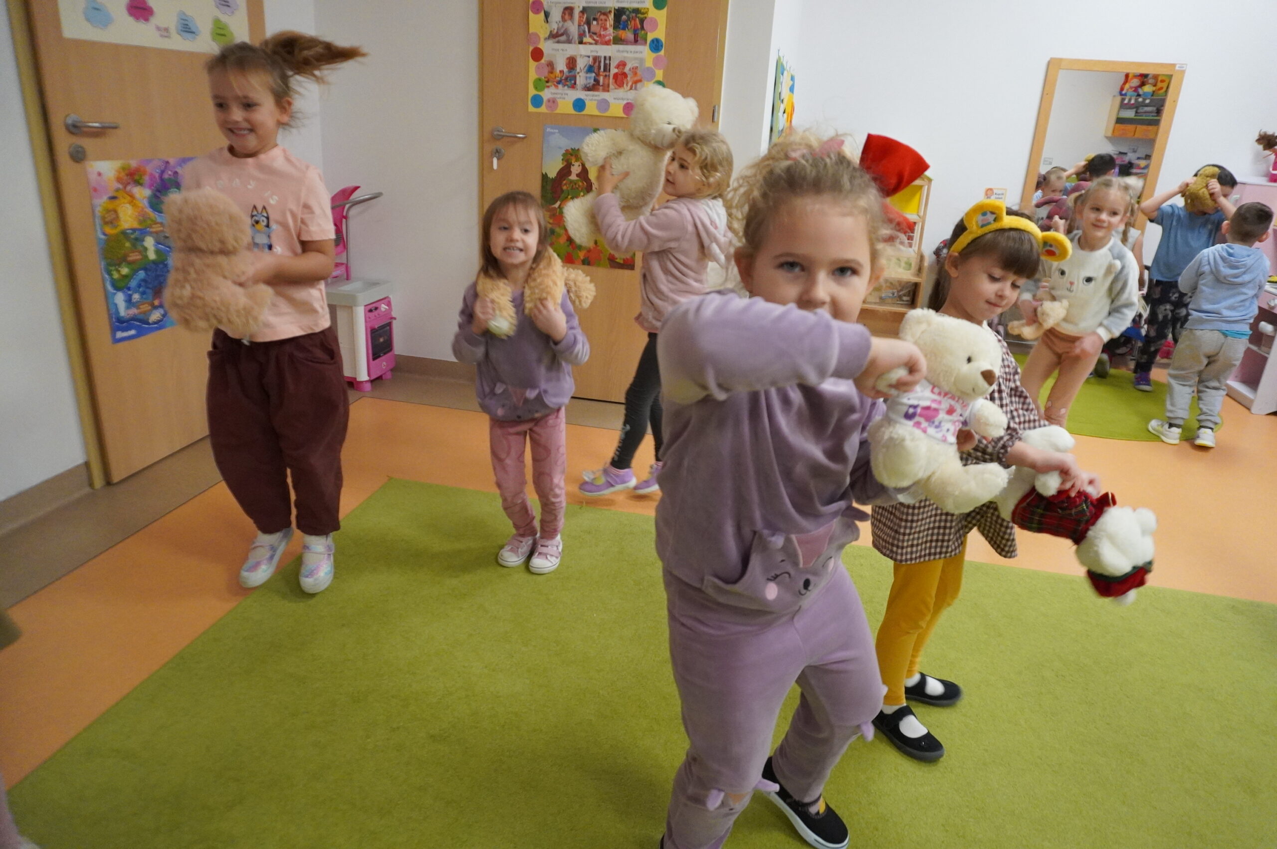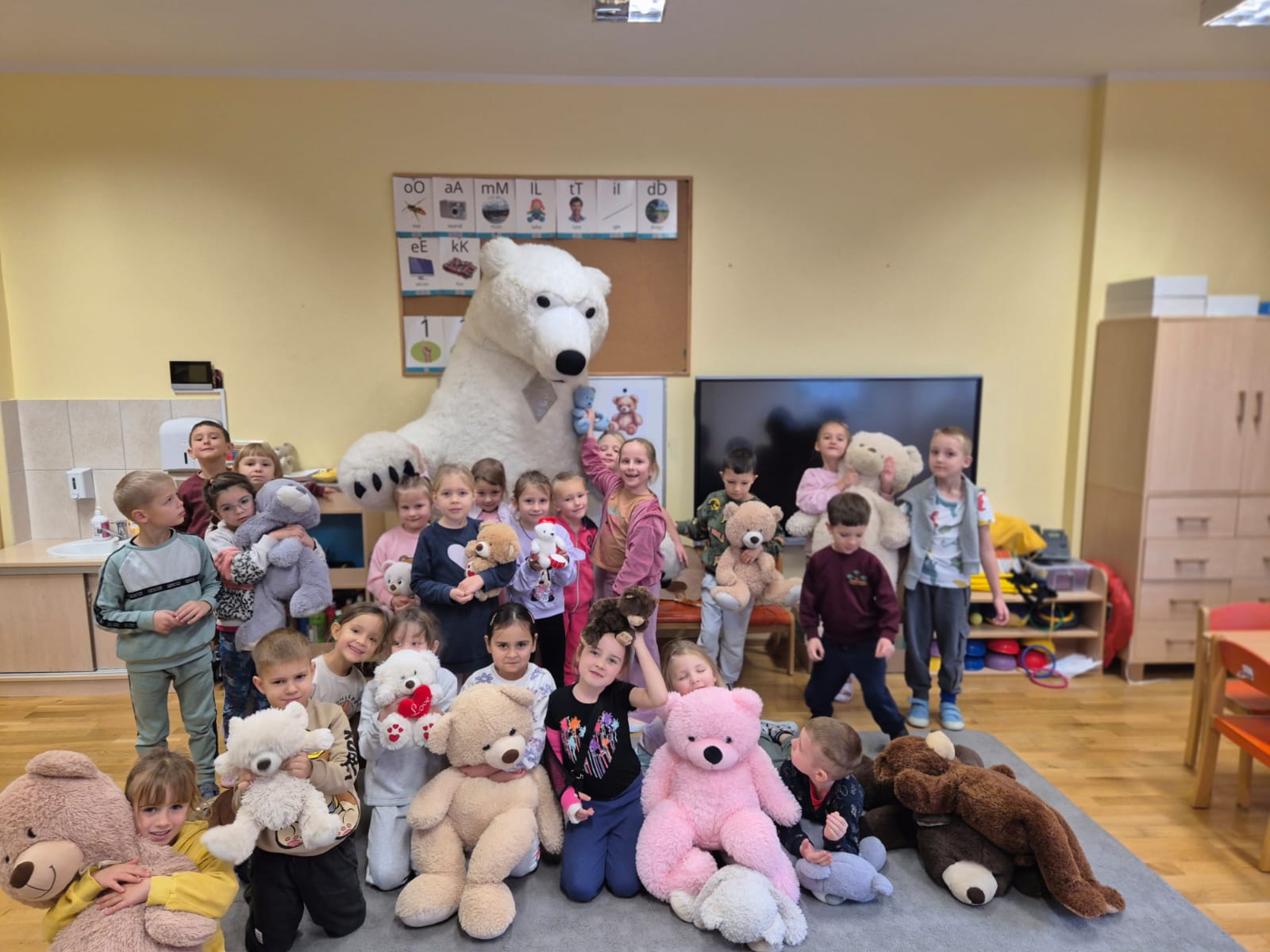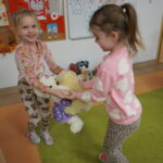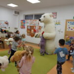 Światowy Dzień Pluszowego Misia obchodzi się 25 listopada i jest to święto poświęcone najukochańszej zabawce wszystkich dzieci, która często jest pierwszym przyjacielem oraz dodaje odwagi w wielu sytuacjach. W naszym przedszkolu w tym dniu pojawiło się mnóstwo pięknych misiów oraz ten jeden największy, który zachęcił dzieci do wspólnej tanecznej zabawy. Iskierki i Aniołki na tę okazje upiekły wraz z paniami misiowe ciasteczka, które ze smakiem zjedli. To był naprawdę „misiowy” dzień.