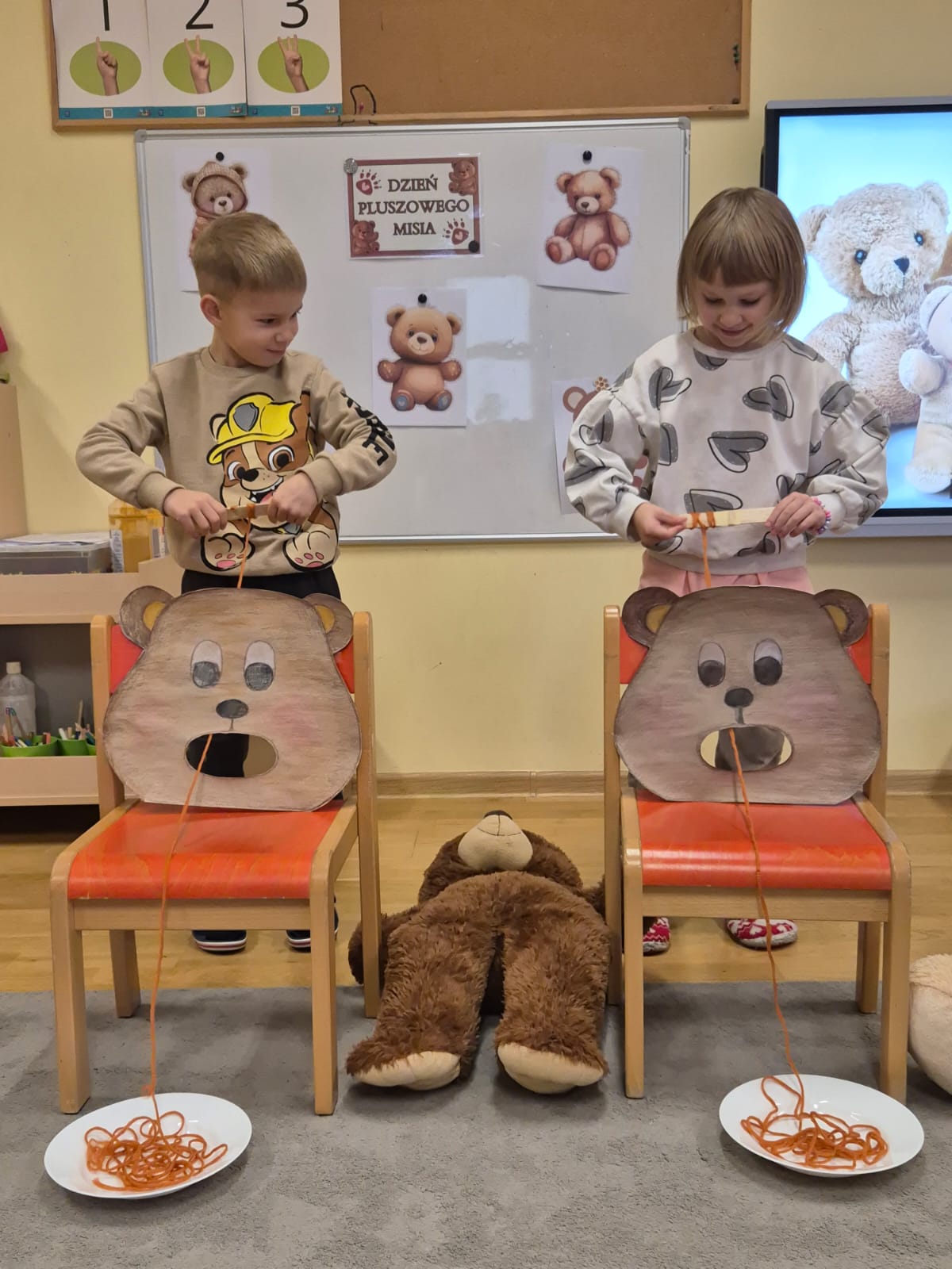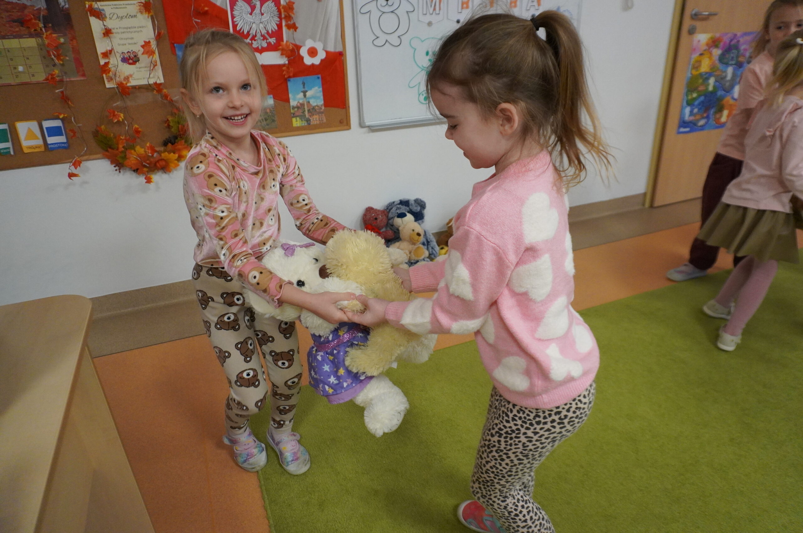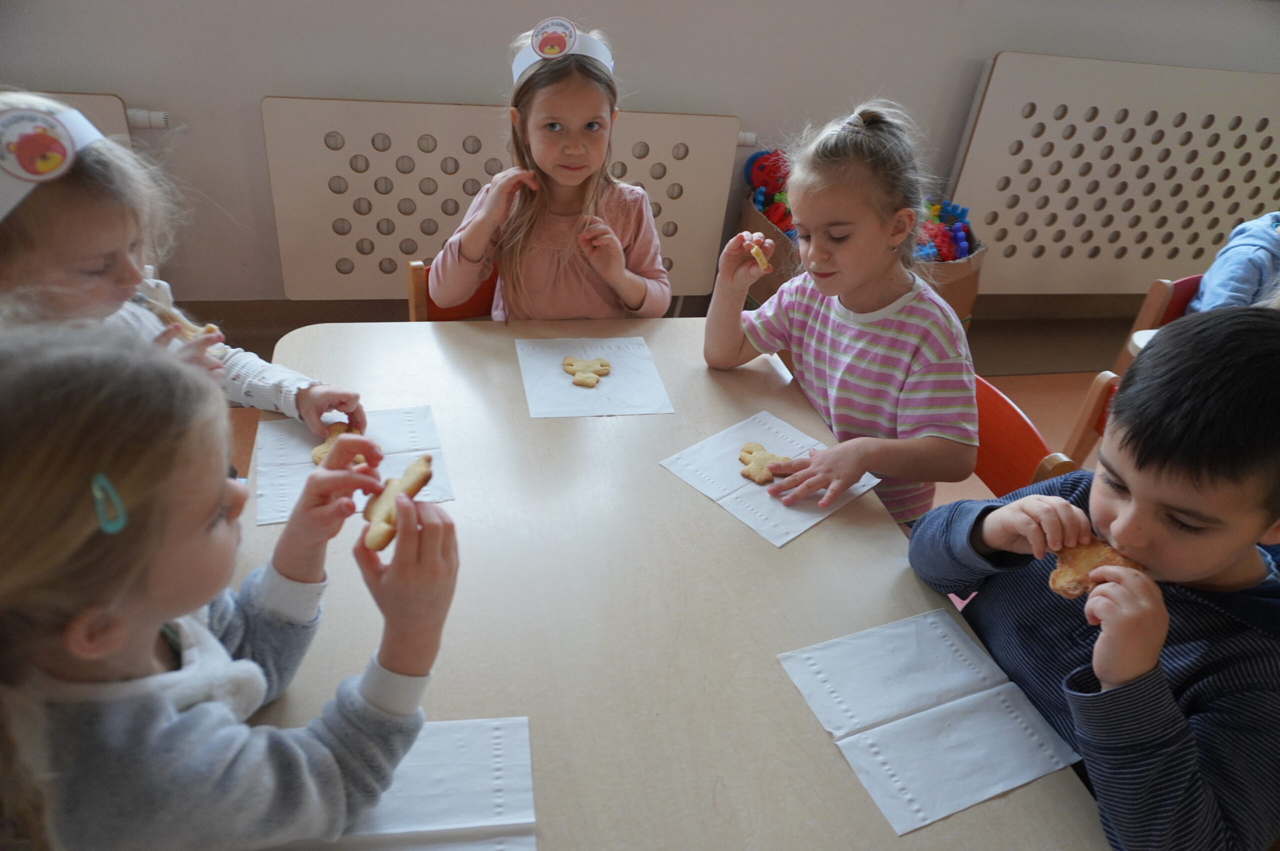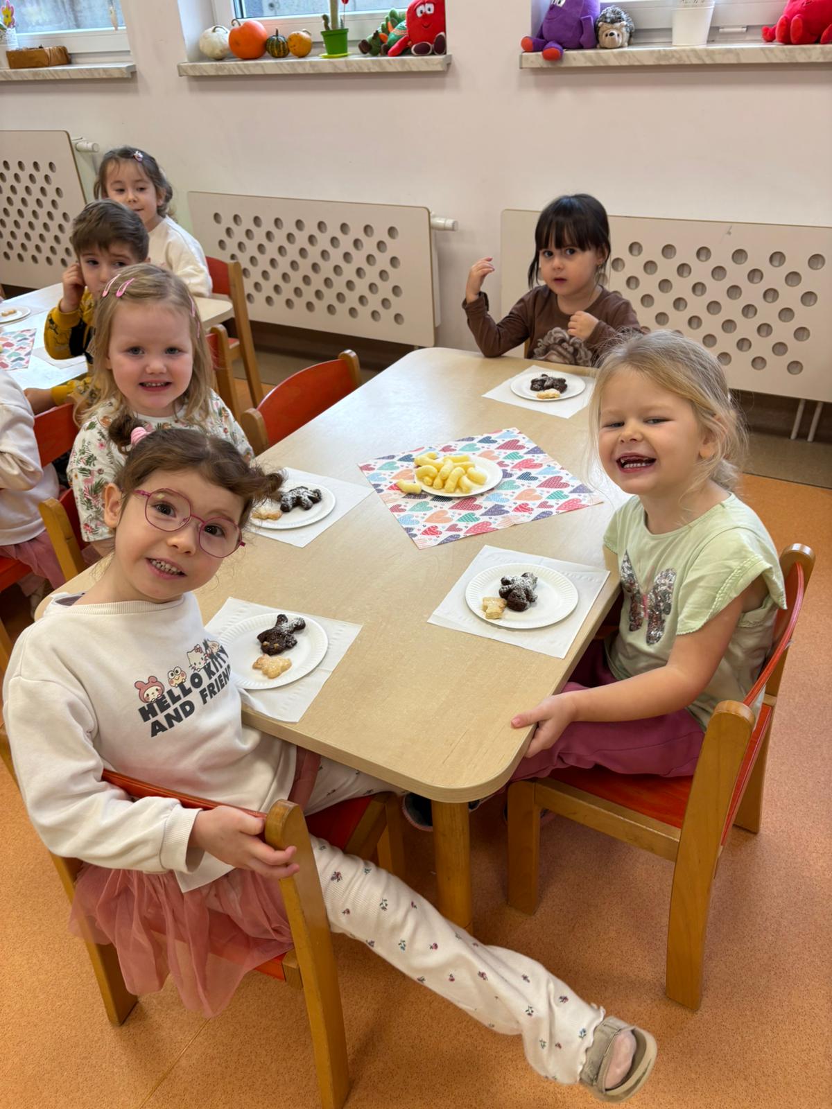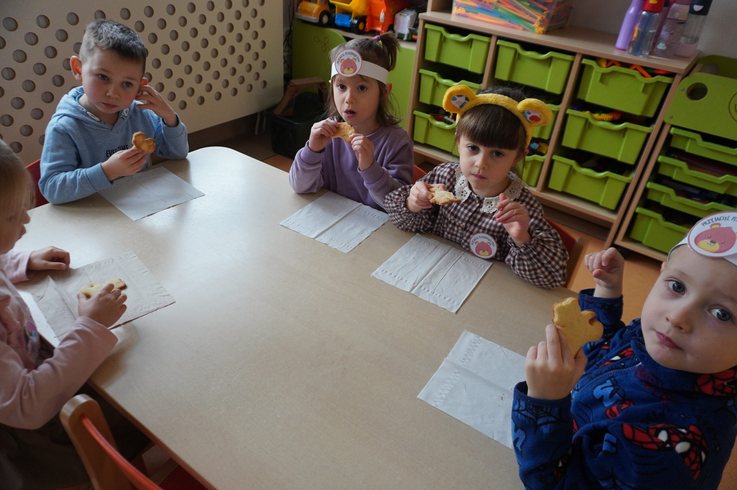 Światowy Dzień Pluszowego Misia obchodzi się 25 listopada i jest to święto poświęcone najukochańszej zabawce wszystkich dzieci, która często jest pierwszym przyjacielem oraz dodaje odwagi w wielu sytuacjach. W naszym przedszkolu w tym dniu pojawiło się mnóstwo pięknych misiów oraz ten jeden największy, który zachęcił dzieci do wspólnej tanecznej zabawy. Iskierki i Aniołki na tę okazje upiekły wraz z paniami misiowe ciasteczka, które ze smakiem zjedli. To był naprawdę „misiowy” dzień.