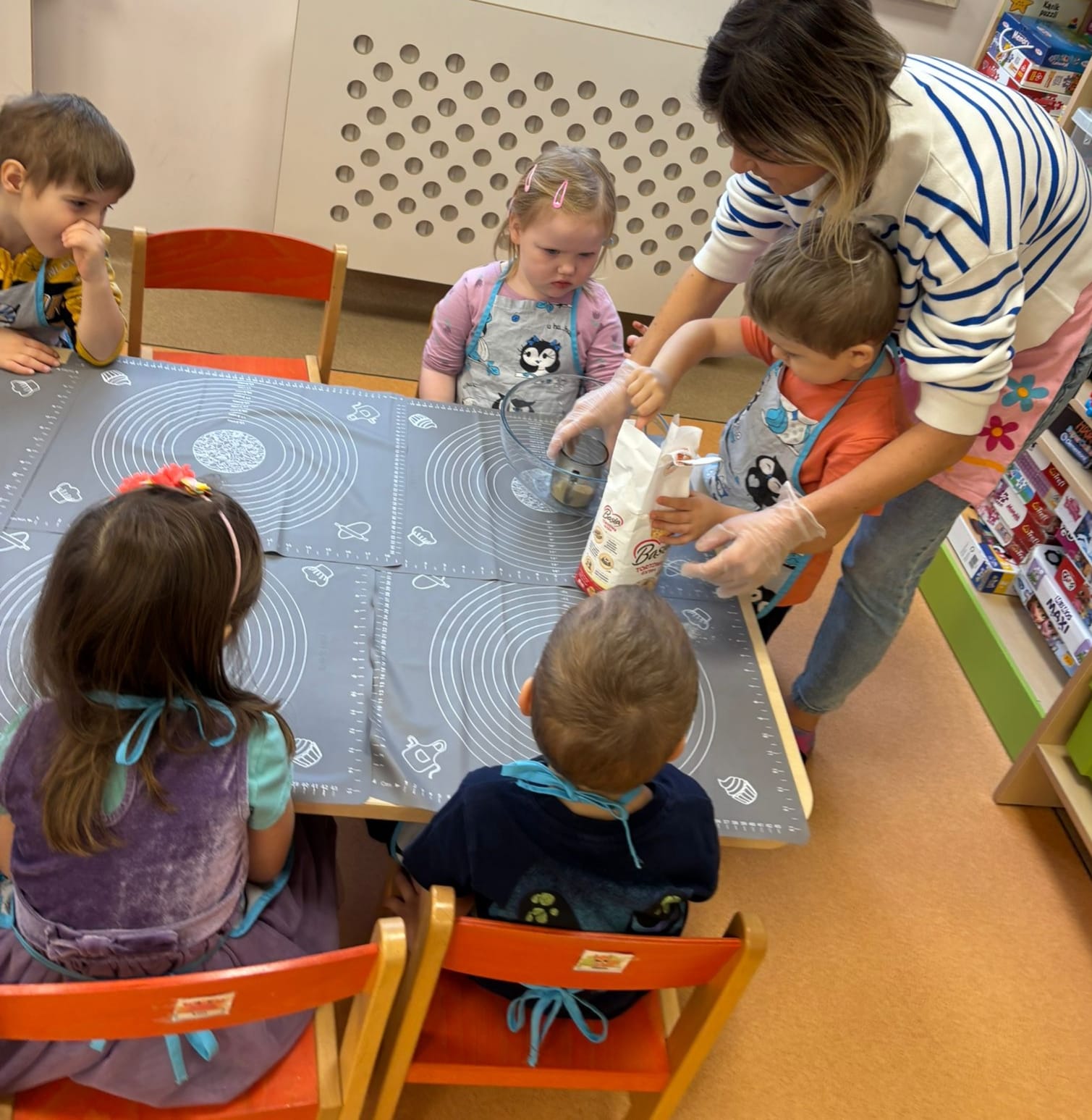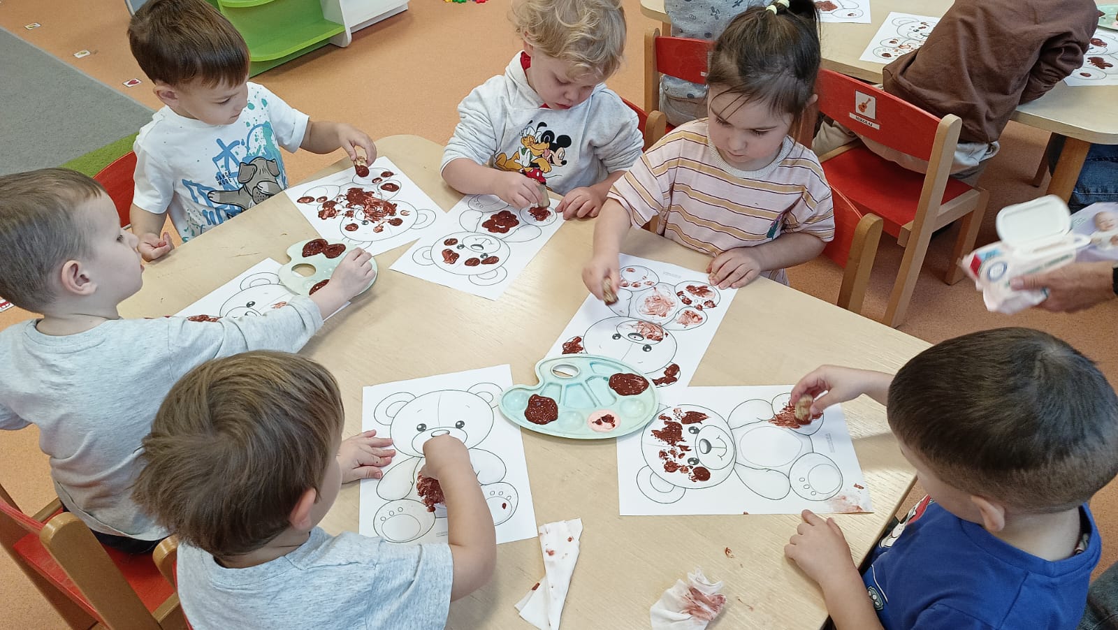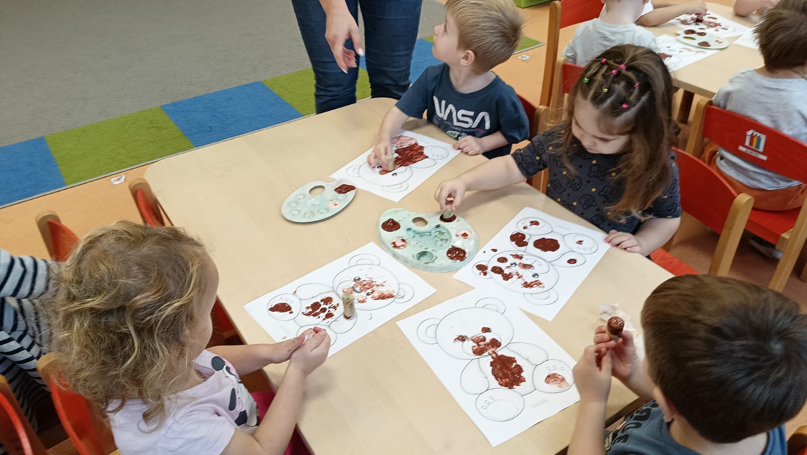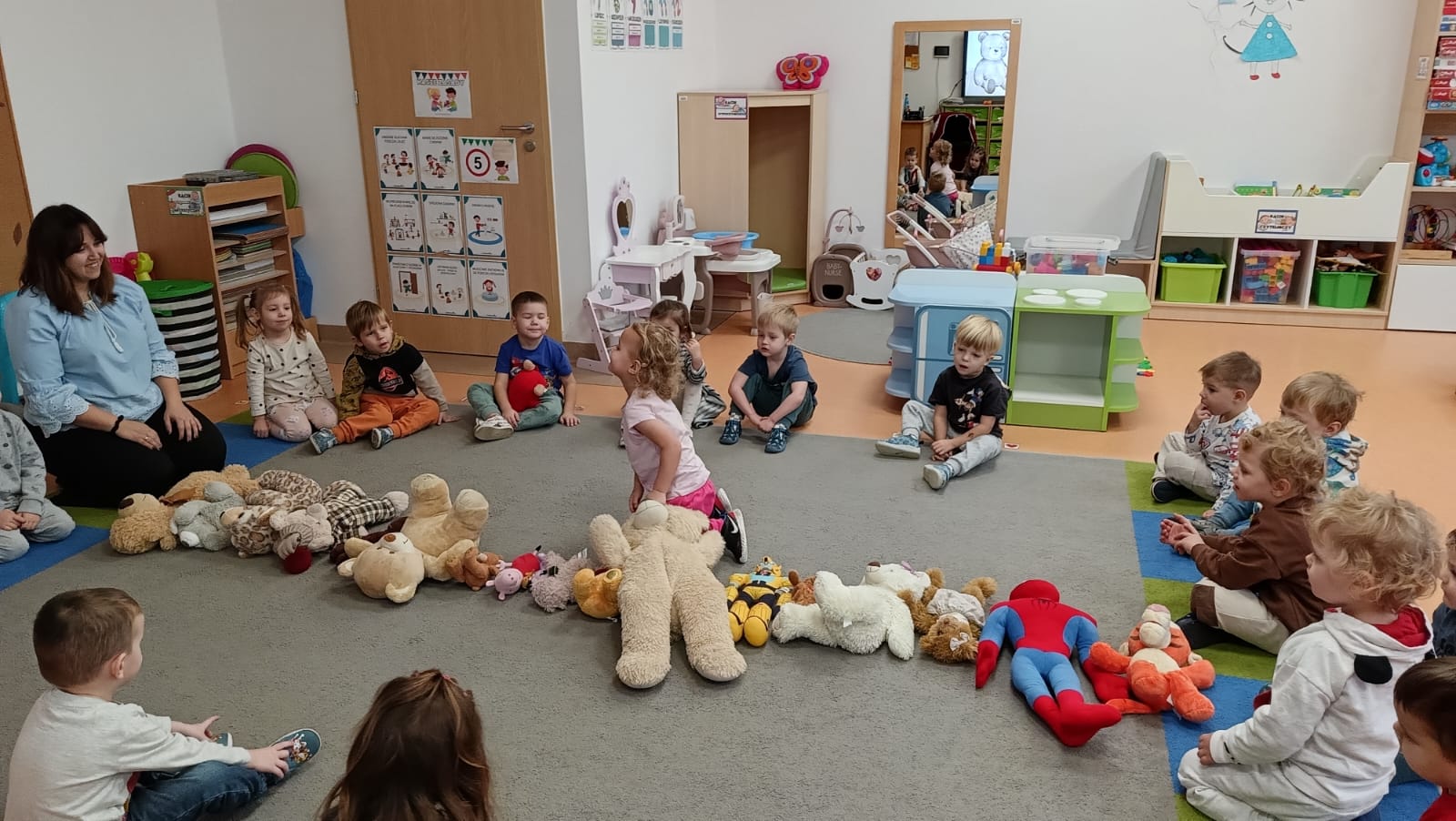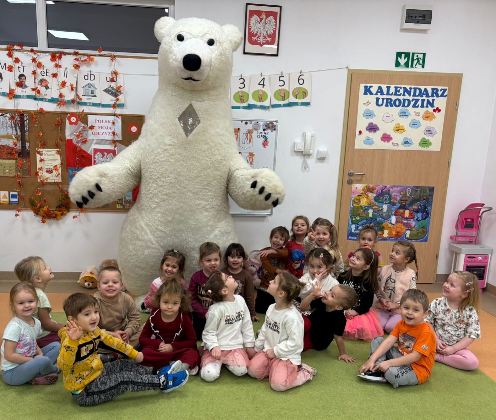 Światowy Dzień Pluszowego Misia obchodzi się 25 listopada i jest to święto poświęcone najukochańszej zabawce wszystkich dzieci, która często jest pierwszym przyjacielem oraz dodaje odwagi w wielu sytuacjach. W naszym przedszkolu w tym dniu pojawiło się mnóstwo pięknych misiów oraz ten jeden największy, który zachęcił dzieci do wspólnej tanecznej zabawy. Iskierki i Aniołki na tę okazje upiekły wraz z paniami misiowe ciasteczka, które ze smakiem zjedli. To był naprawdę „misiowy” dzień.