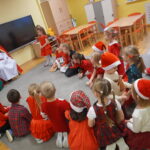W naszym przedszkolu wydarzyło się coś wyjątkowego. Odwiedził nas Święty Mikołaj, witany z ogromną radością i ciekawością przez wszystkie dzieci. Przedszkolaki przygotowały dla niego układy taneczne i piosenki, a w zamian Mikołaj obdarzył każdego ciepłym uśmiechem i upominkiem. Spotkanie było pełne uśmiechów, świątecznej atmosfery, którą będziemy jeszcze długo pamiętać. To był dzień pełen niezapomnianych chwil!