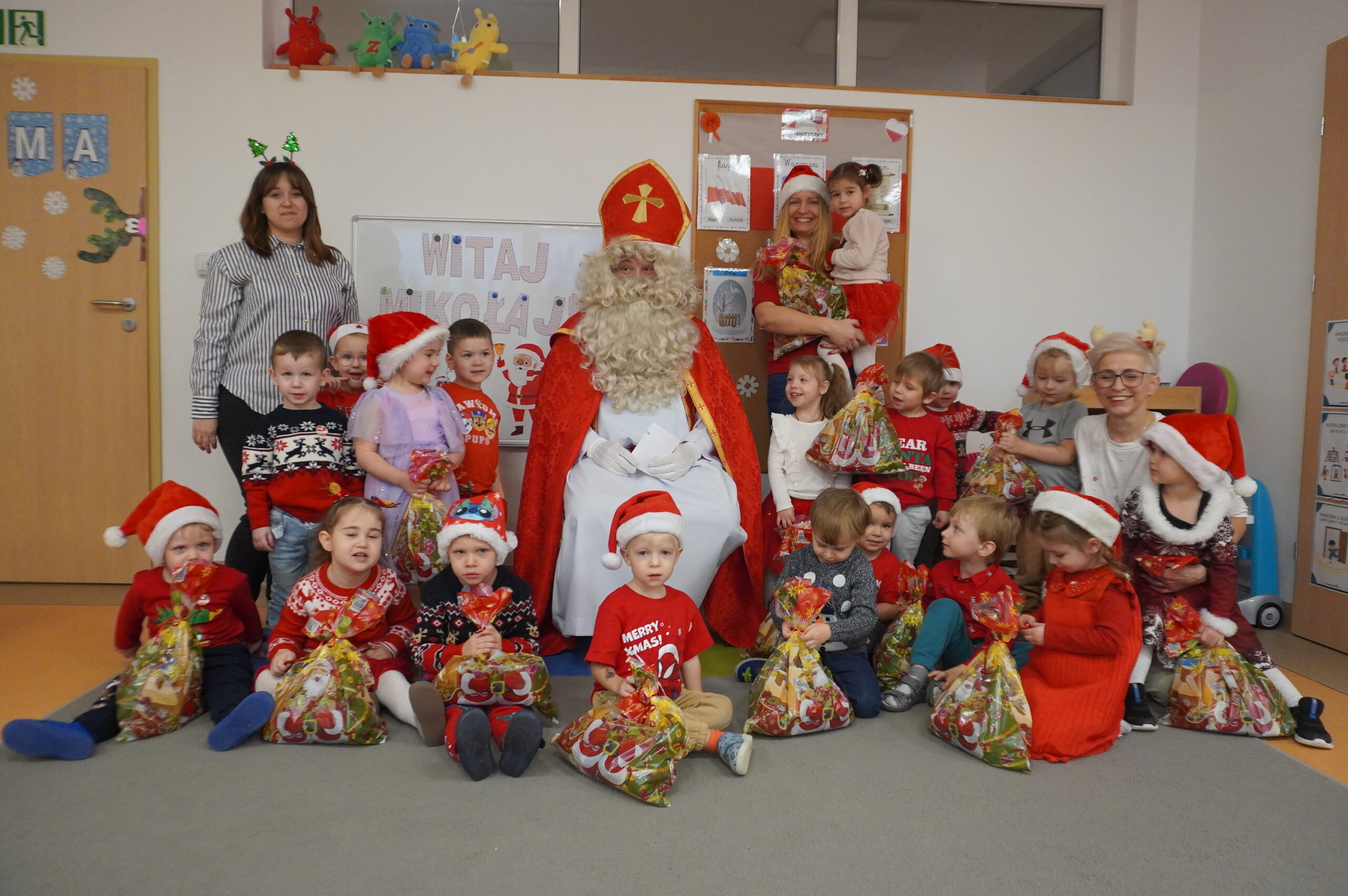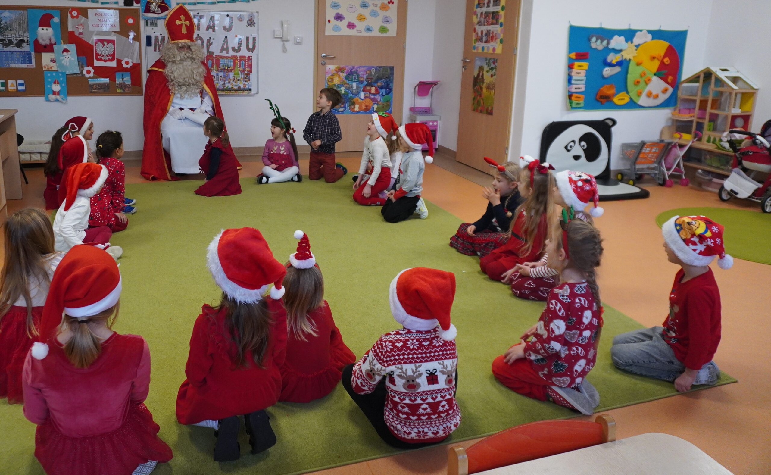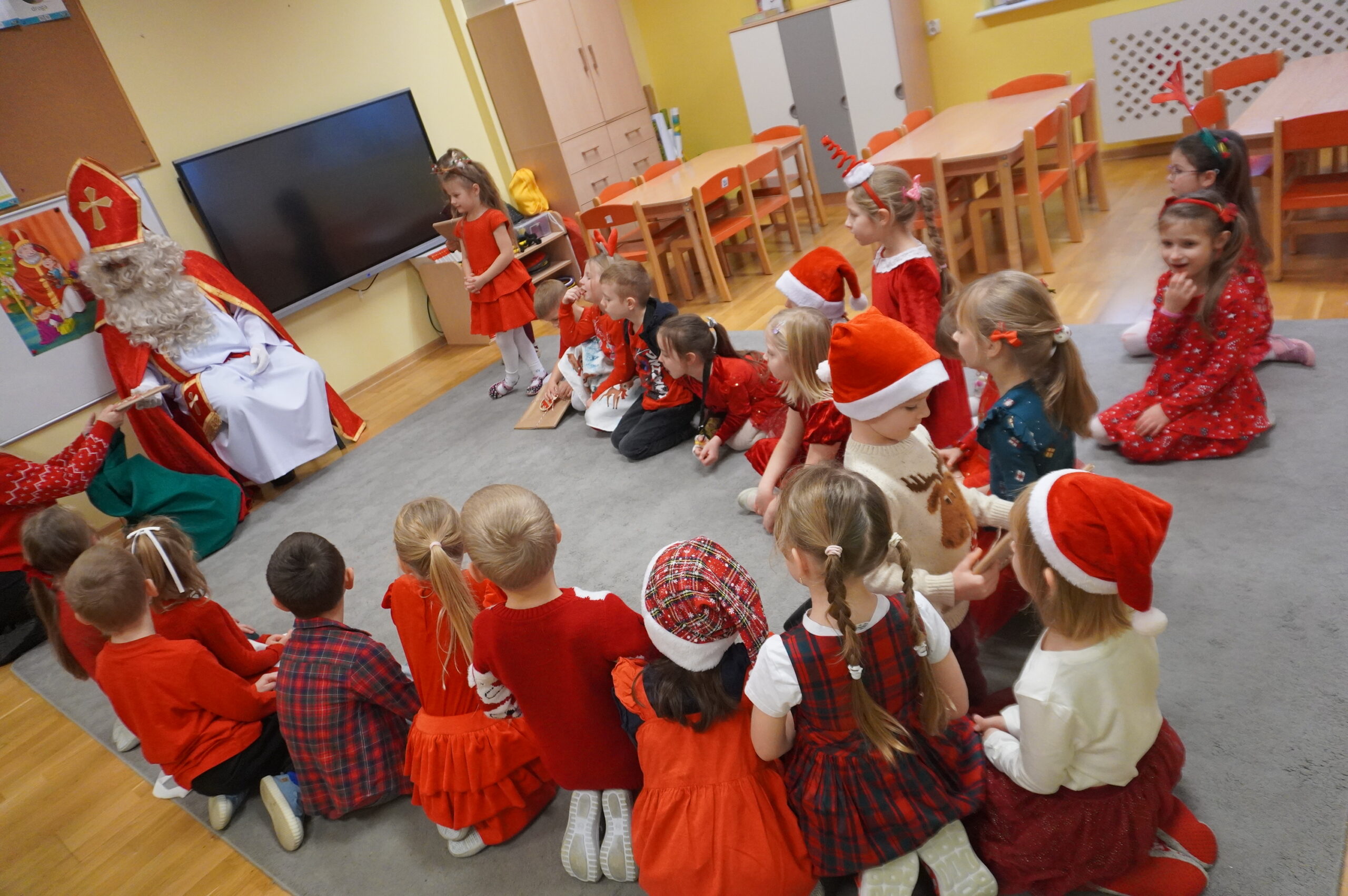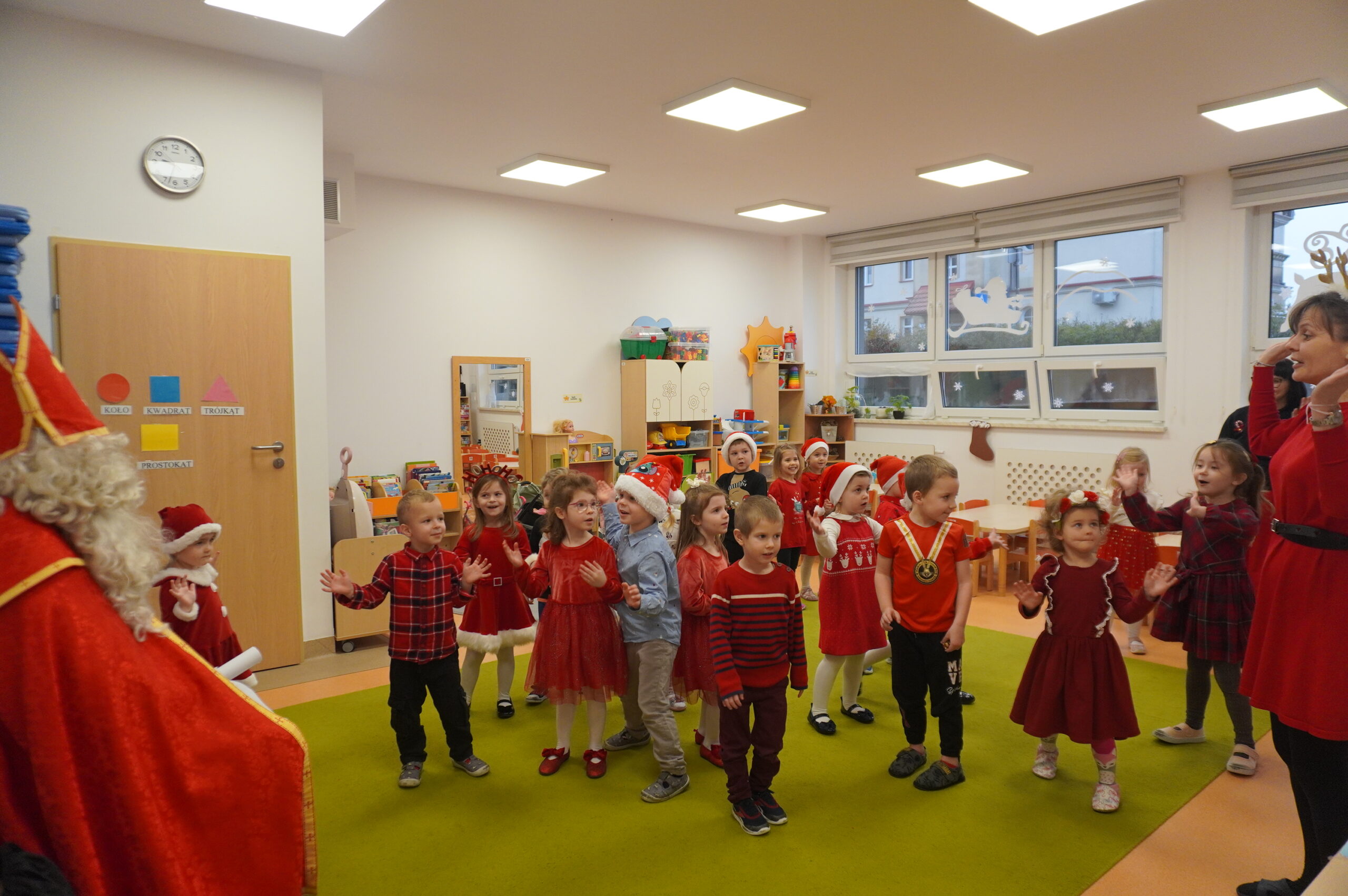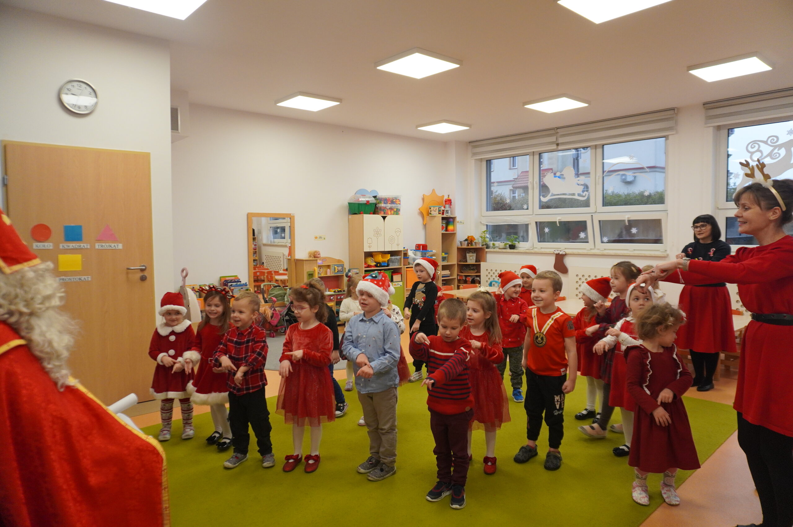 W naszym przedszkolu wydarzyło się coś wyjątkowego. Odwiedził nas Święty Mikołaj, witany z ogromną radością i ciekawością przez wszystkie dzieci. Przedszkolaki przygotowały dla niego układy taneczne i piosenki, a w zamian Mikołaj obdarzył każdego ciepłym uśmiechem i upominkiem. Spotkanie było pełne uśmiechów, świątecznej atmosfery, którą będziemy jeszcze długo pamiętać. To był dzień pełen niezapomnianych chwil!