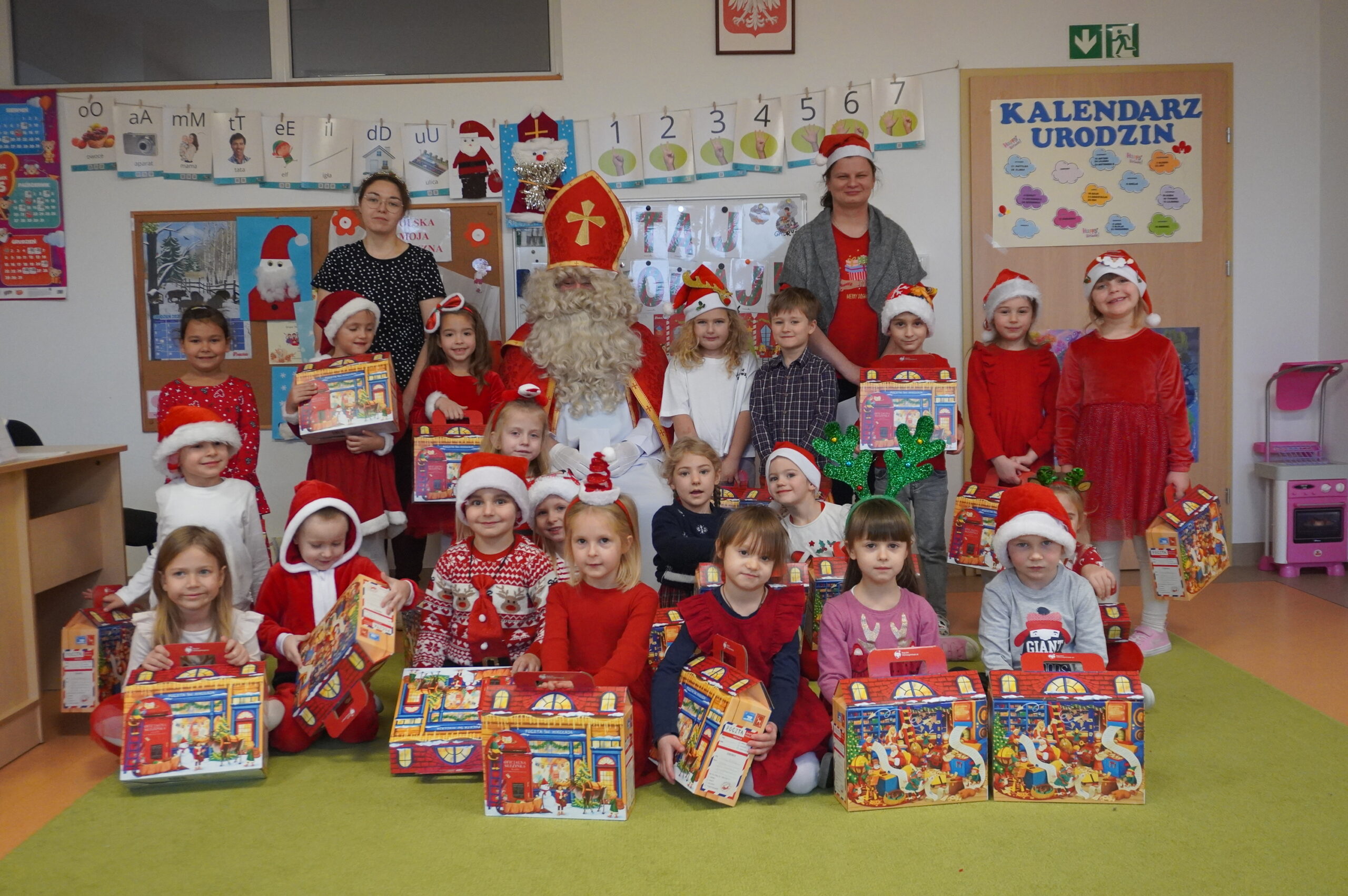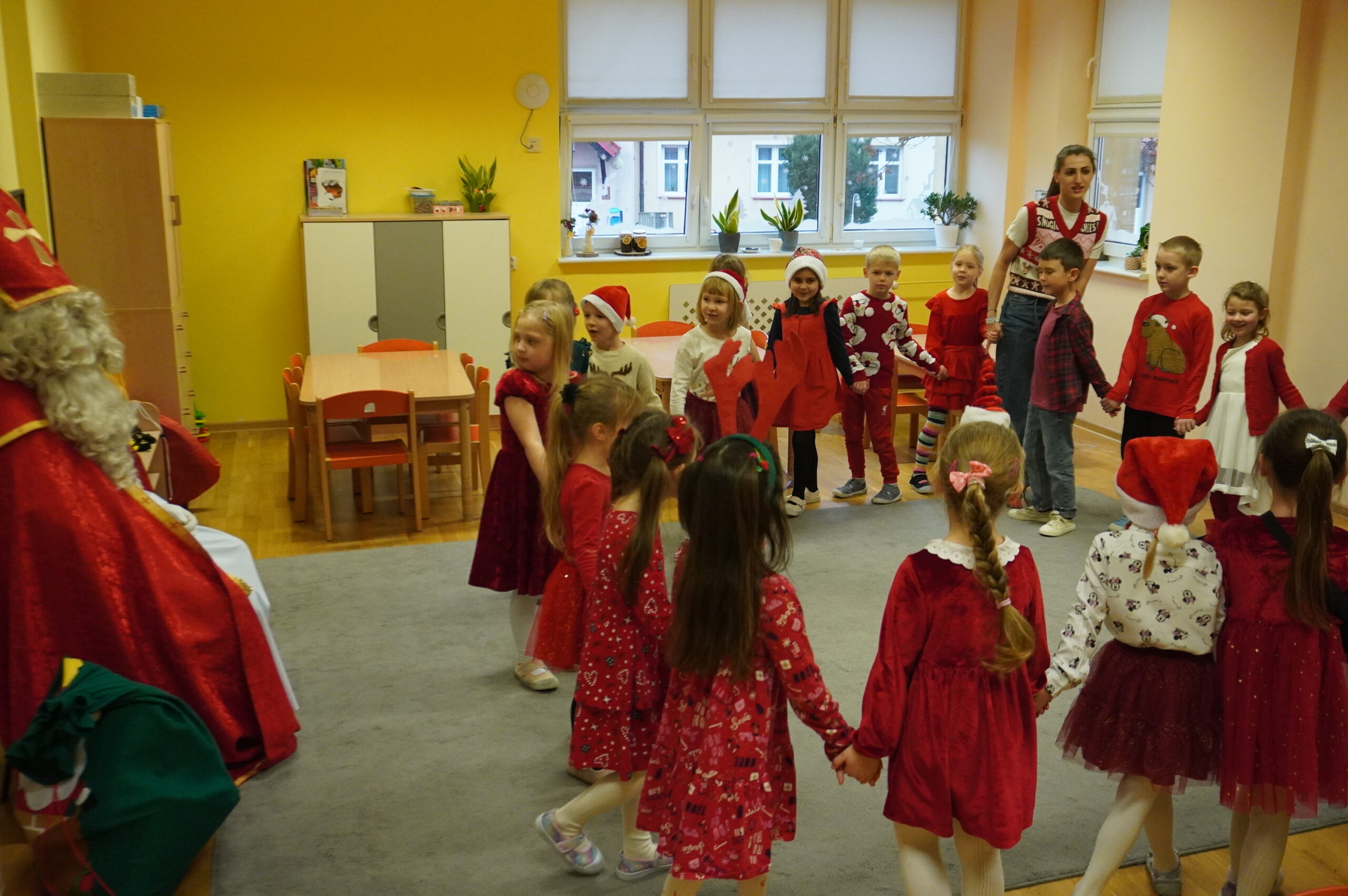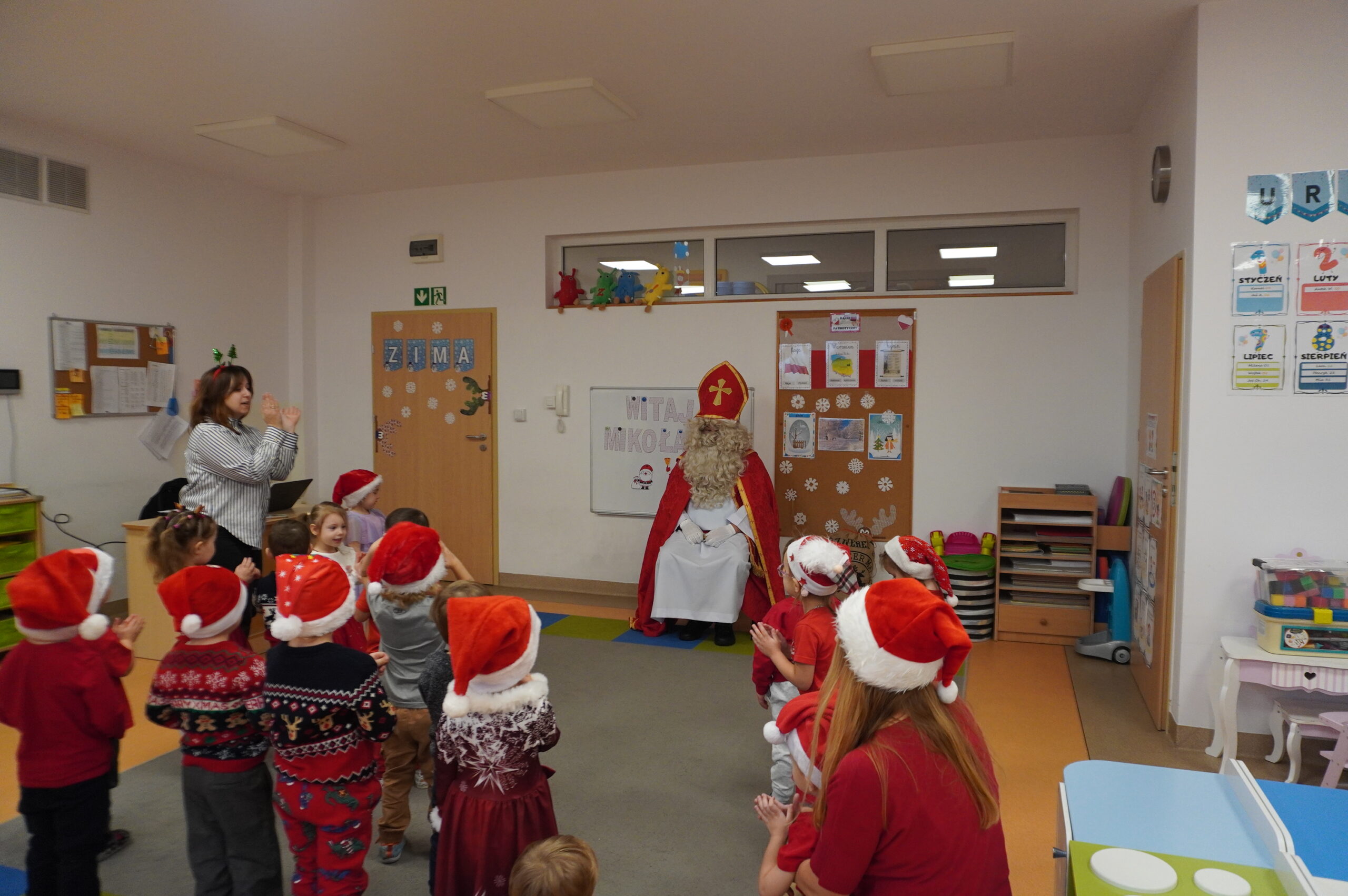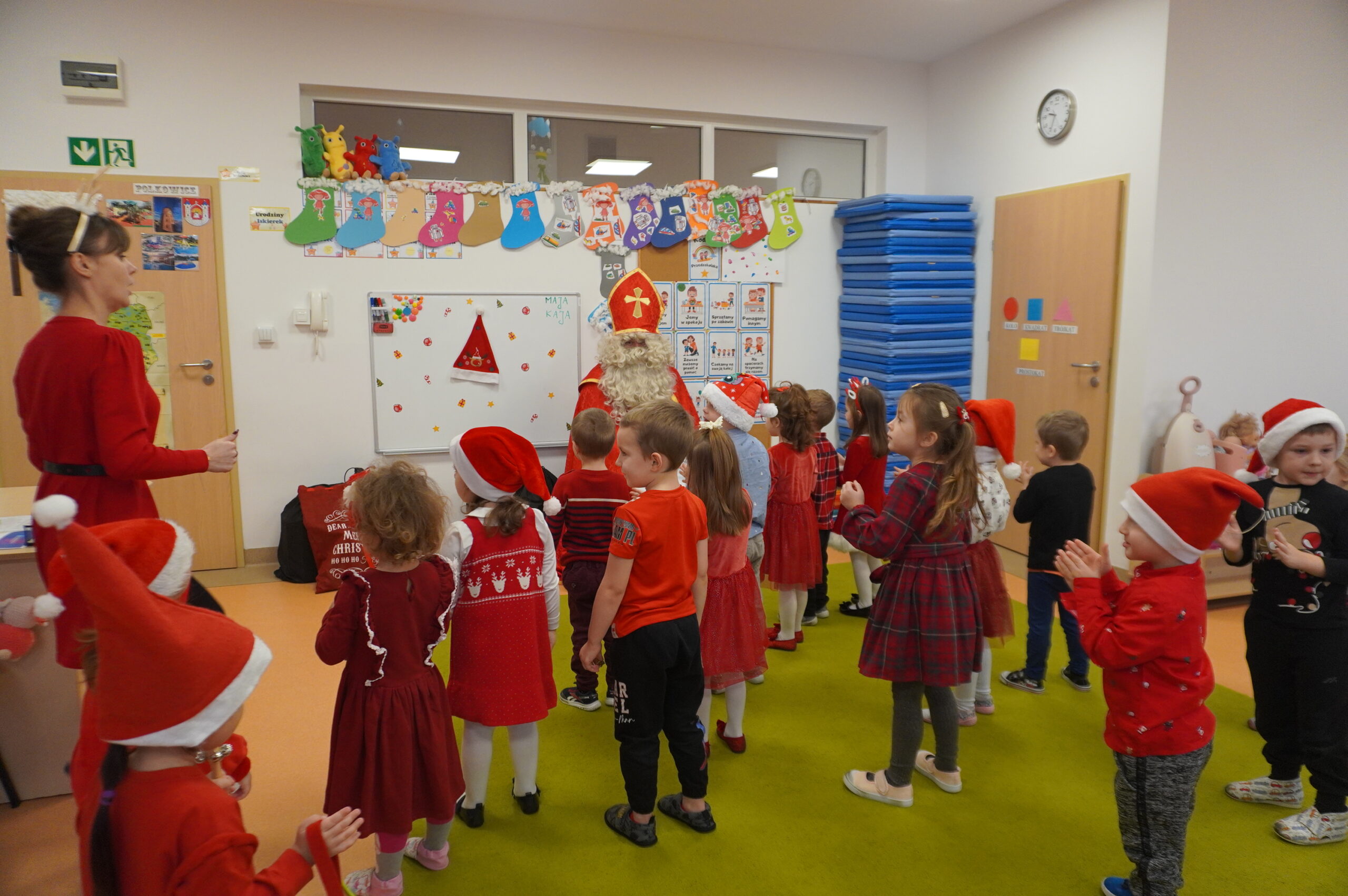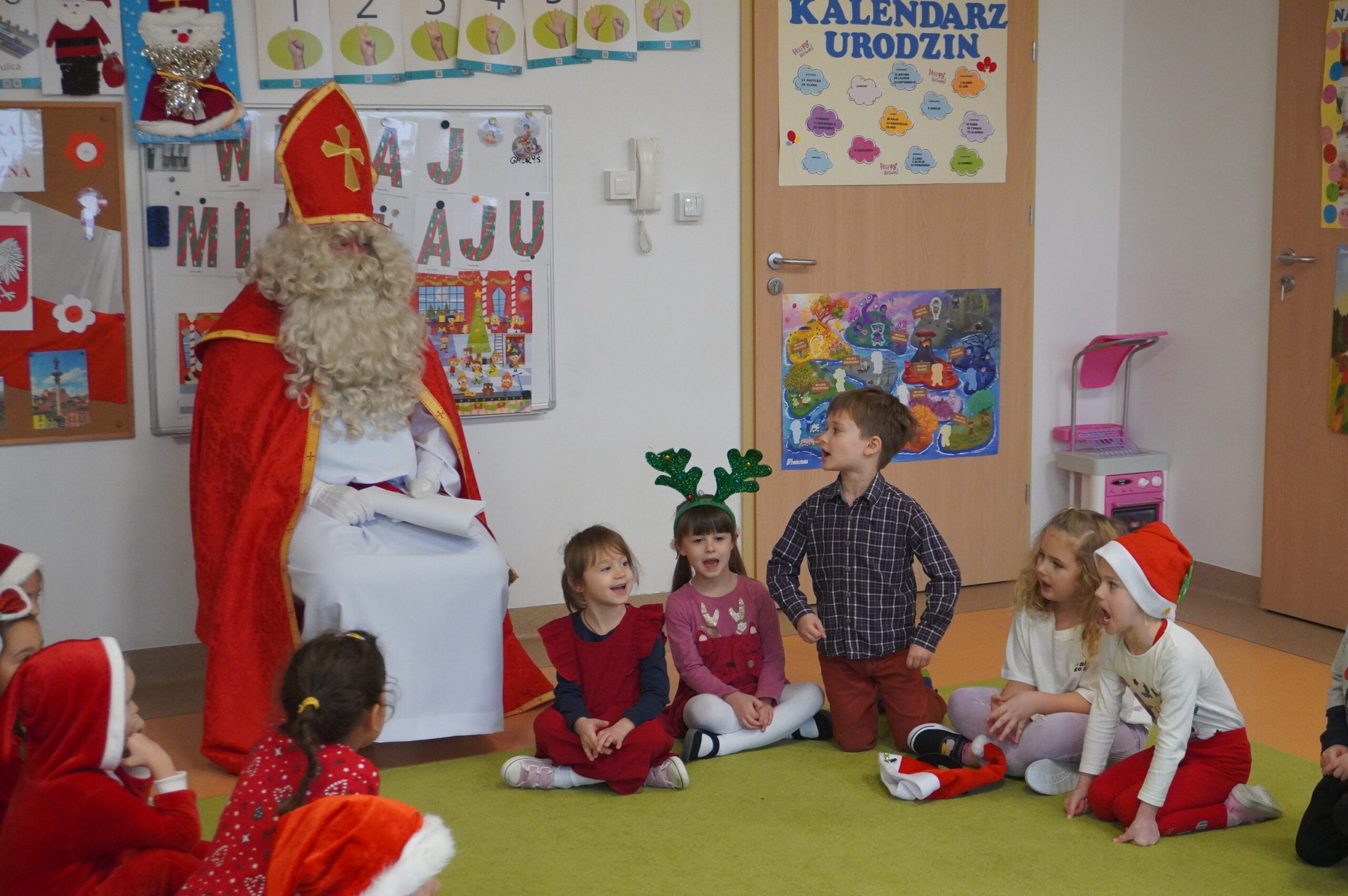 W naszym przedszkolu wydarzyło się coś wyjątkowego. Odwiedził nas Święty Mikołaj, witany z ogromną radością i ciekawością przez wszystkie dzieci. Przedszkolaki przygotowały dla niego układy taneczne i piosenki, a w zamian Mikołaj obdarzył każdego ciepłym uśmiechem i upominkiem. Spotkanie było pełne uśmiechów, świątecznej atmosfery, którą będziemy jeszcze długo pamiętać. To był dzień pełen niezapomnianych chwil!