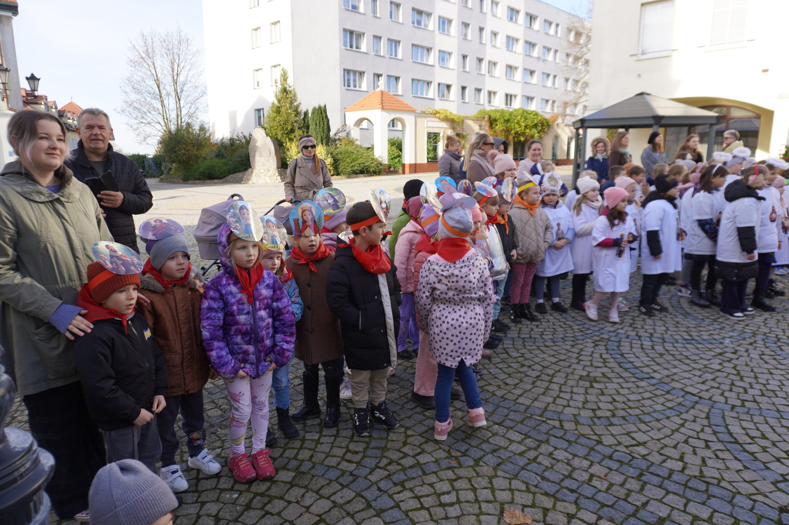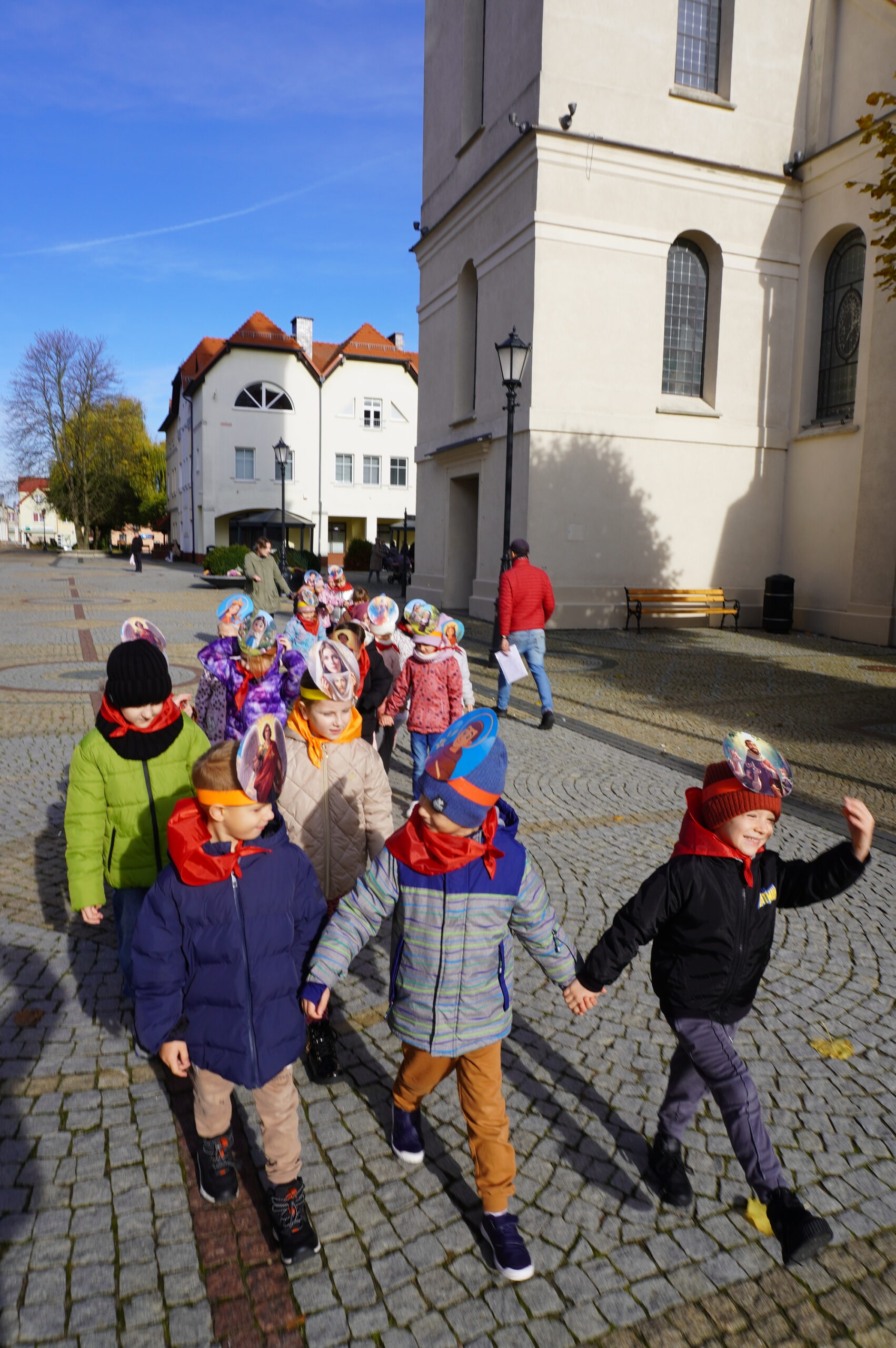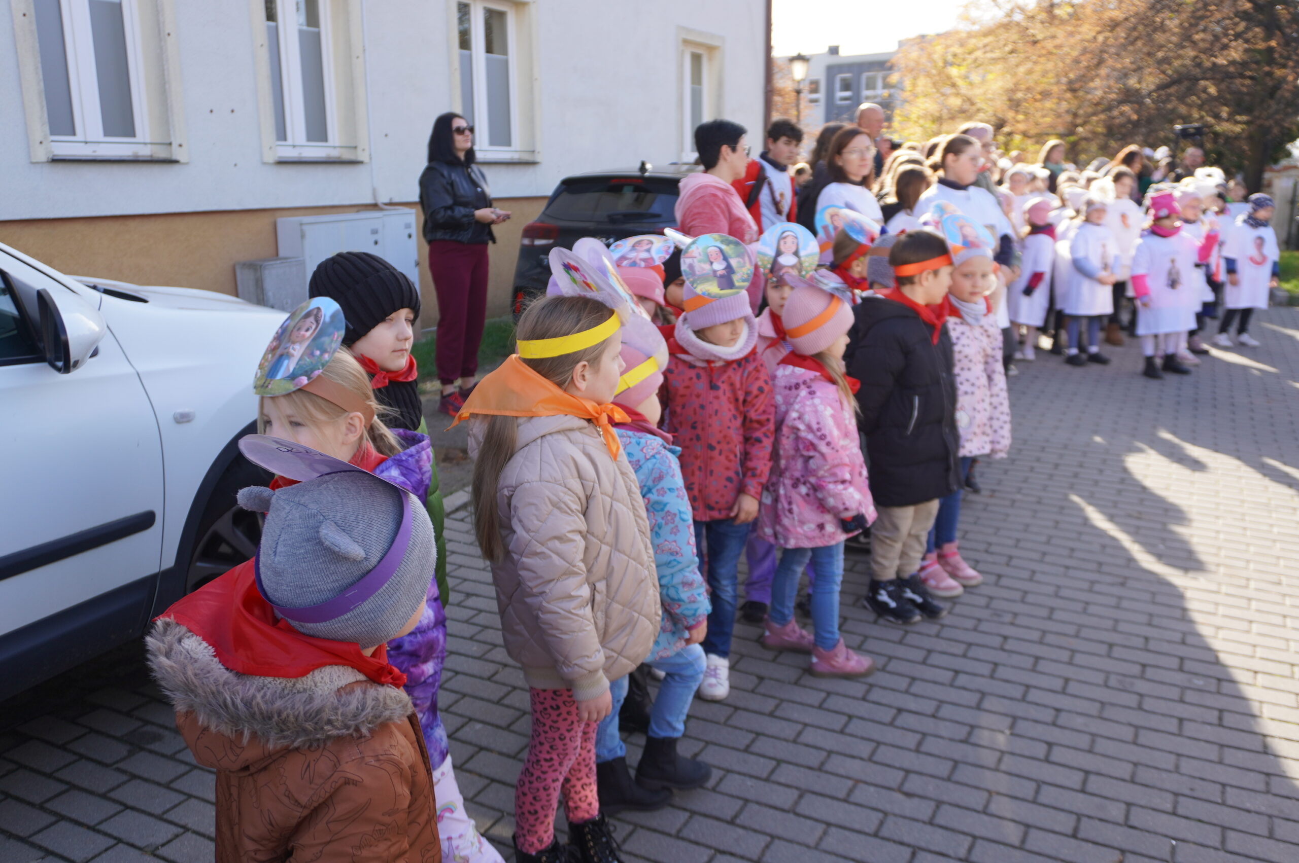 Grupa Promyczki uczestniczyła w Korowodzie Wszystkich Świętych. To wyjątkowy dzień, w którym dzieci ubrane w stroje przedstawiające świętych i aniołów, wyruszają w barwnym pochodzie, aby przypomnieć wszystkim, że świętość to radość, dobro i miłość do innych. Podczas wydarzenia przedszkolaki wspólnie ze szkołą śpiewały, modliły się, a także tańczyły. Dziękujemy za ten czas!
