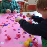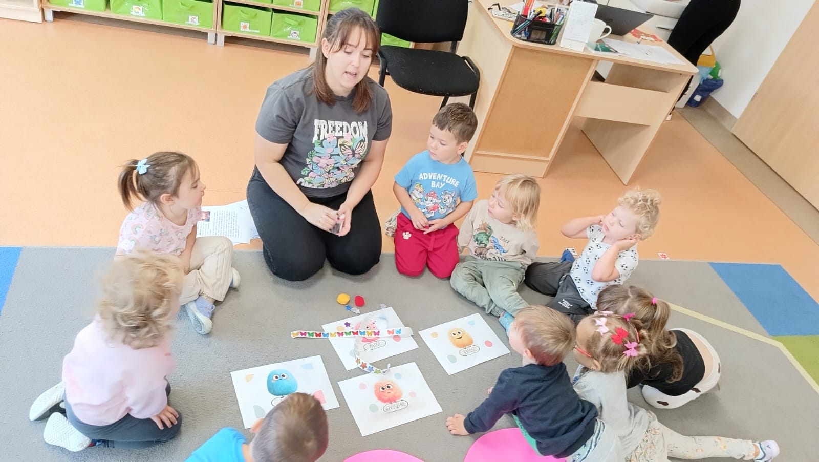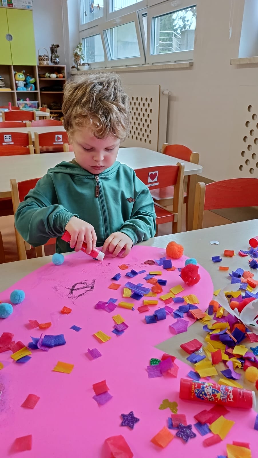 Owieczki wykonały I zadanie w ramach Ogólnopolskiego Projektu Edukacyjnego ,,W krainie uczuć – bajkoterapia z autorskimi opowieściami dla przedszkolaków”. Zadaniem dzieci było wysłuchanie bajki pt. ,,Magiczne uczucie po występie”, a potem wykonać serce wzruszeń. Celem tego zadania była pomoc dzieciom w rozpoznaniu i rozumieniu emocji wzruszenia pokazując ją jako pozytywny wyraz miłości, dumy i radości.