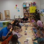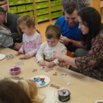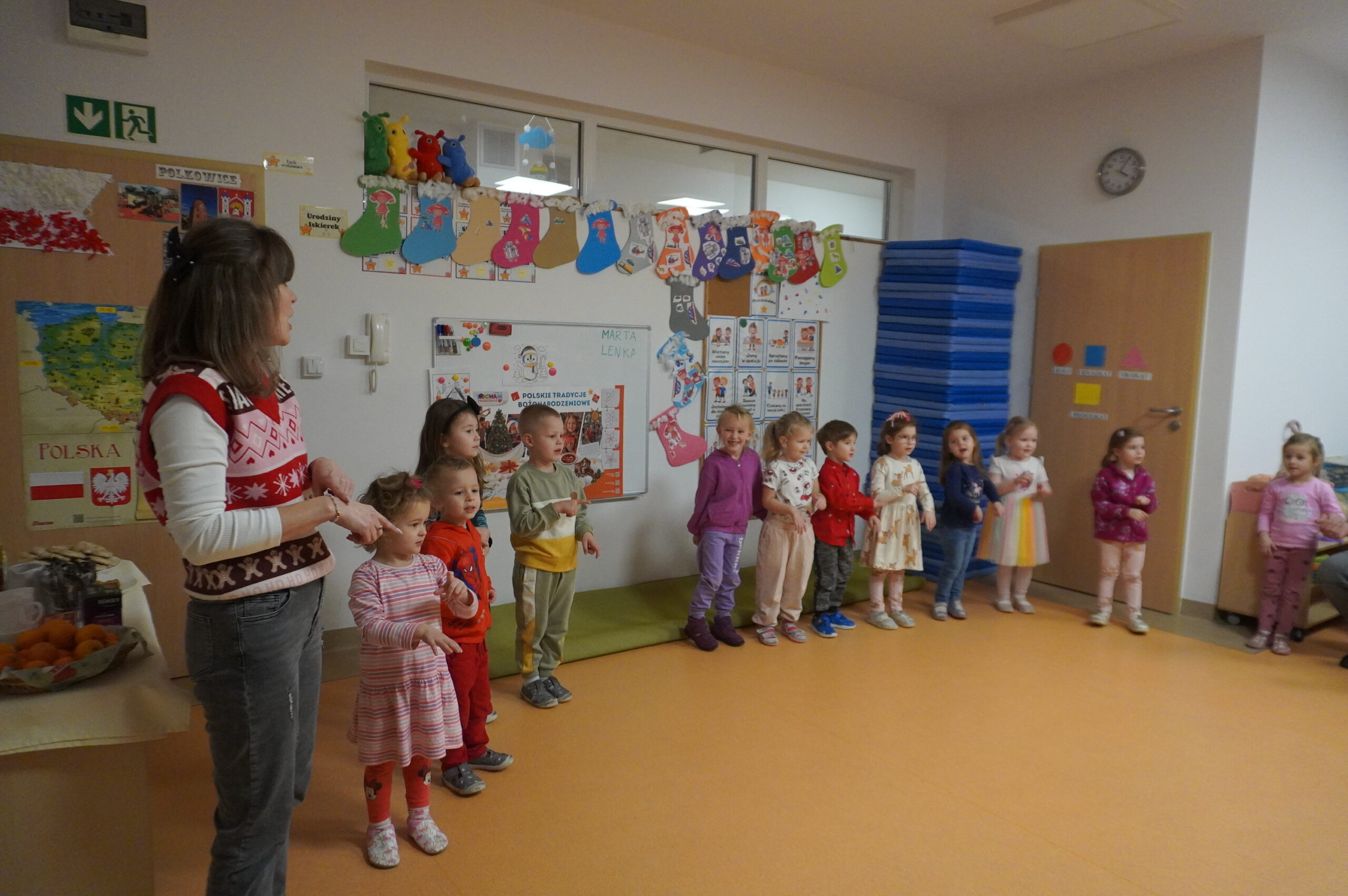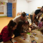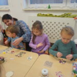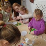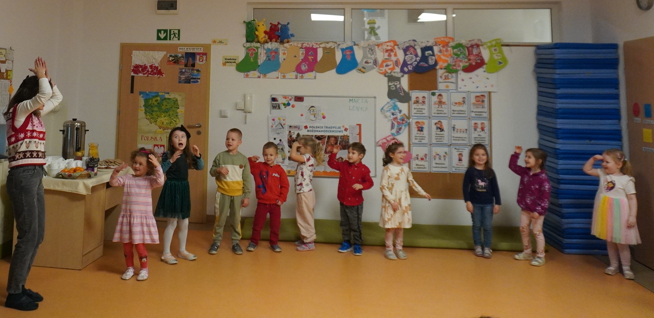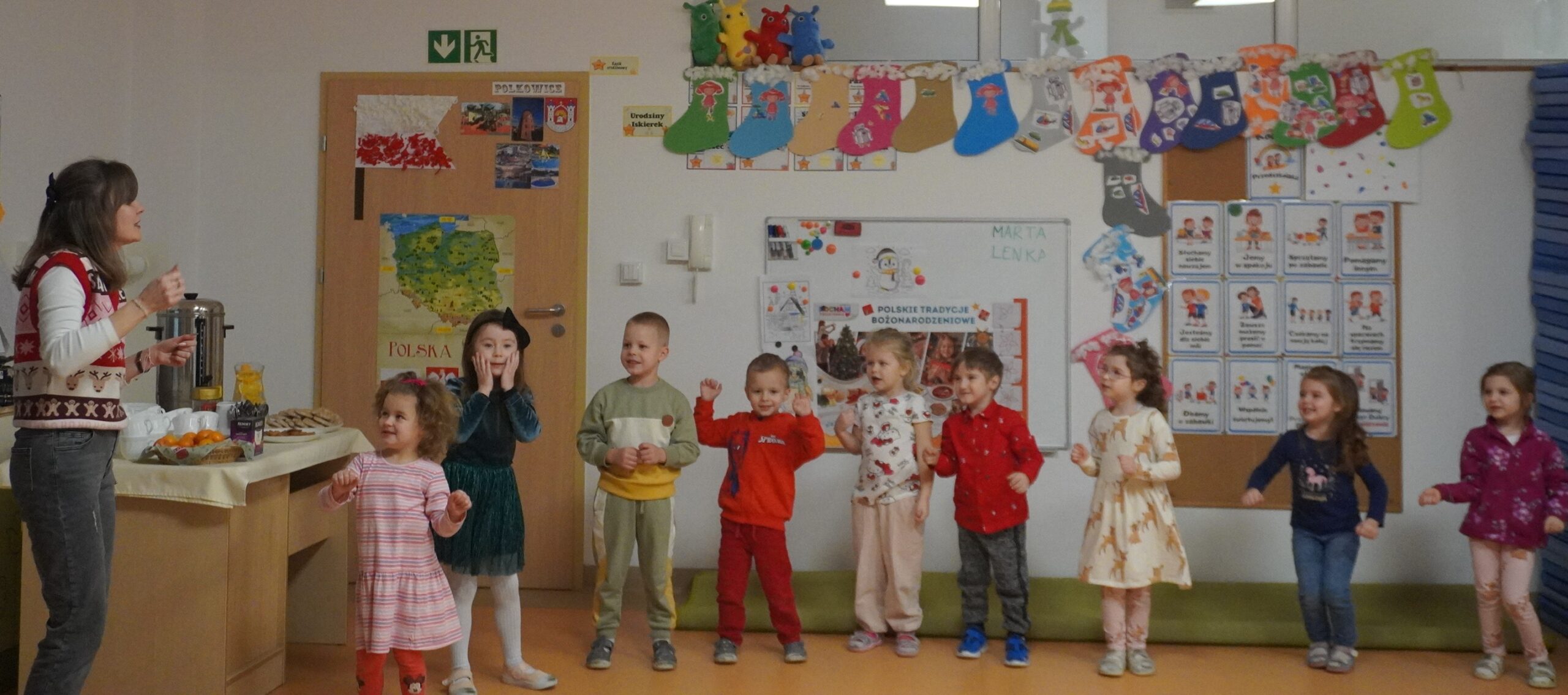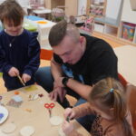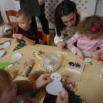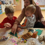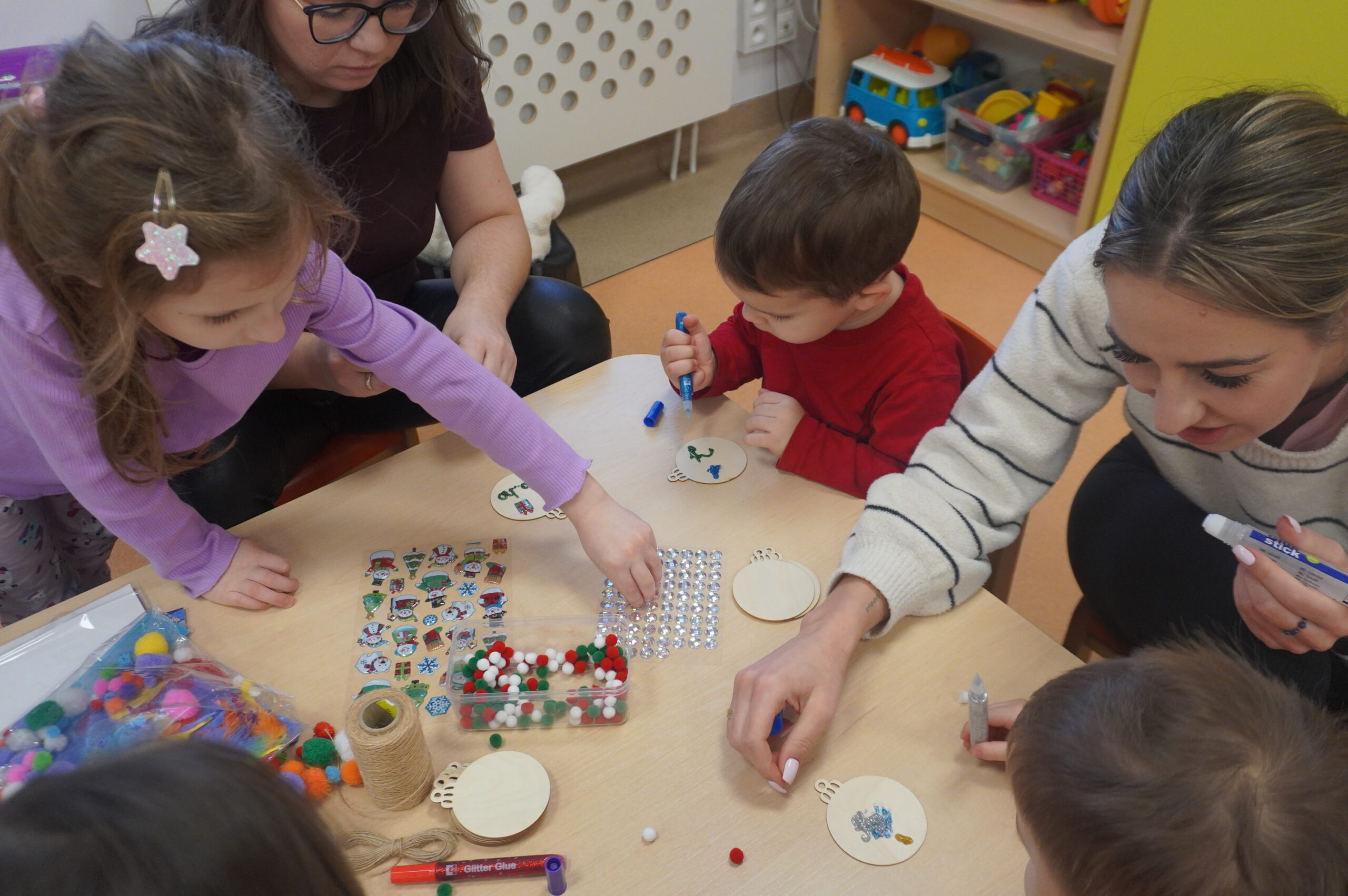W grupach Owieczki oraz Iskierki odbyły się radosne warsztaty świąteczne z udziałem rodziców. Owieczki wspólnie z bliskimi tworzyły i ozdabiały drewniane bombki, wykorzystując różnorodne materiały dekoracyjne. Natomiast Iskierki rozpoczęły warsztaty krótkim występem artystycznym i również wykonały piękne ozdoby na choinkę. Na zakończenie wszyscy razem ubrali choinkę w sali, tworząc wyjątkową, świąteczną atmosferę pełną ciepła i radości.