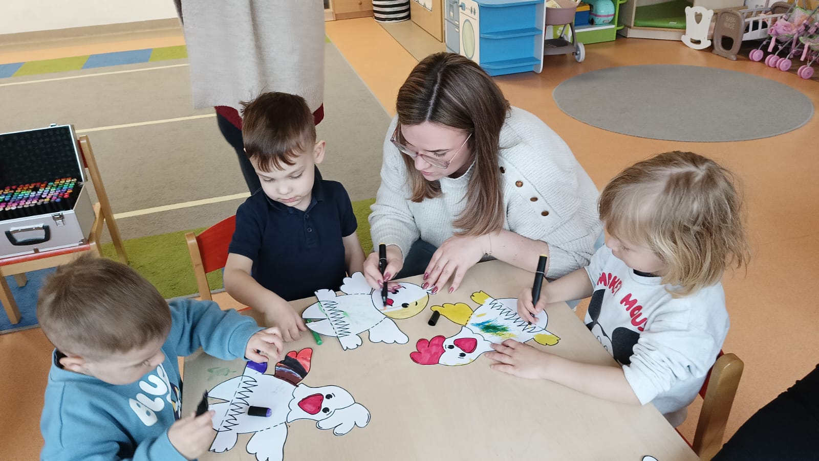 W naszym przedszkolu odbyły się wyjątkowe warsztaty wielkanocne, które poprowadziła mama Felusia oraz Pani Natalia M. Dzieci z ogromnym zaangażowaniem tworzyły kolorowe kurczaczki, ozdabiały jajeczka, poznawały wielkanocne tradycje i rozwijały swoją kreatywność. Wspólne spotkanie przyniosło mnóstwo radości, śmiechu i wiosennej atmosfery. Serdecznie dziękujemy mamie Felusia oraz Pani Natalii za poświęcony czas oraz inspirujące zajęcia!