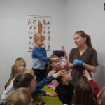 9 kwietnia przedszkolaki wybrały się na wycieczkę pieszą do gabinetu fizjoterapii. Celem wizyty było zapoznanie dzieci z zawodem fizjoterapeuty oraz kształtowanie nawyków dbania o zdrowie i prawidłową postawę ciała. Podczas spotkania Pani Paulina w ciekawy i dostosowany do wieku dzieci sposób opowiedziała o swojej pracy. Dzieci miały również okazję zobaczyć sprzęt wykorzystywany w gabinecie. Na koniec wizyty odbył się mały quiz. Dziękujemy Pani Paulinie!