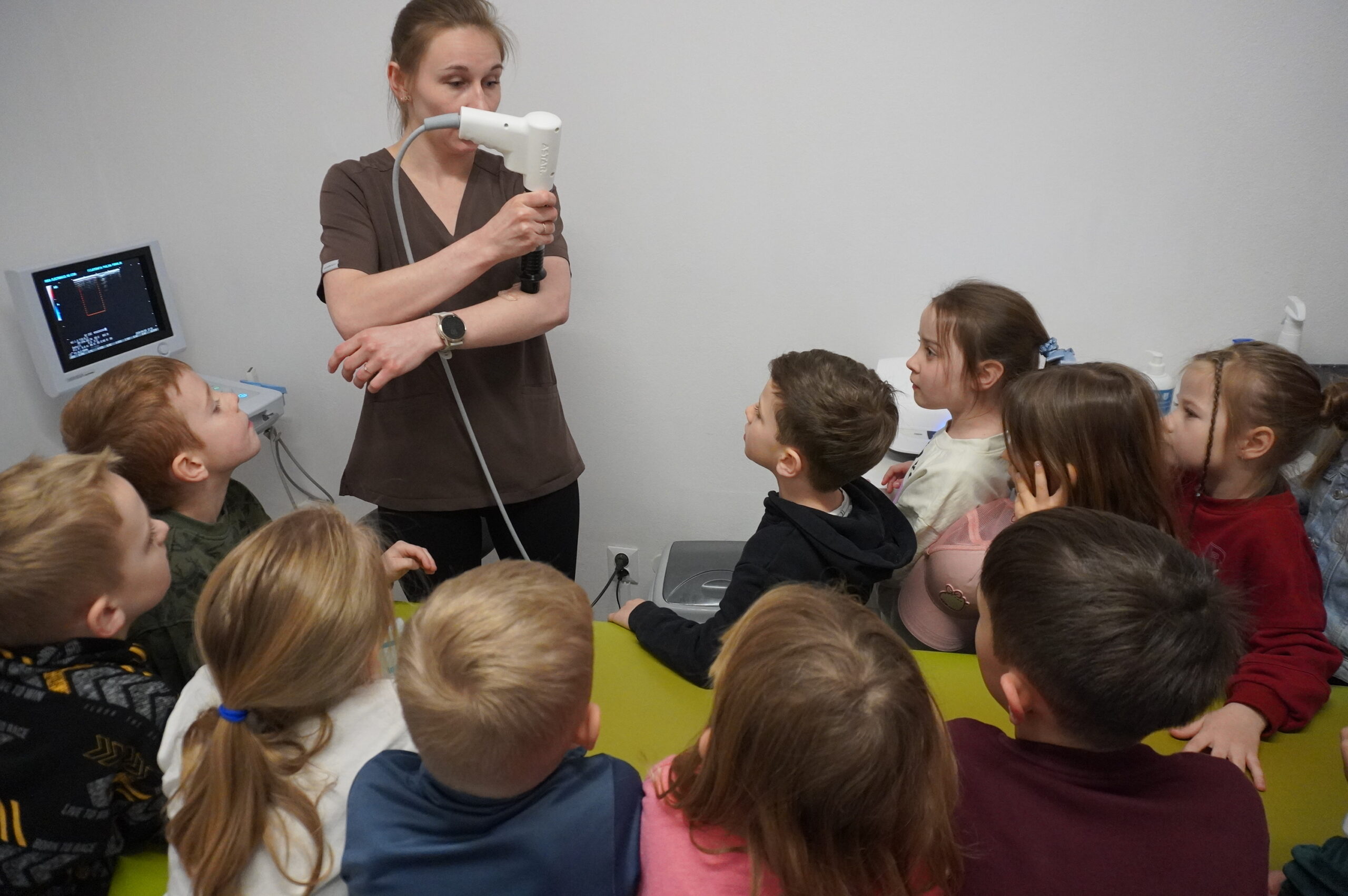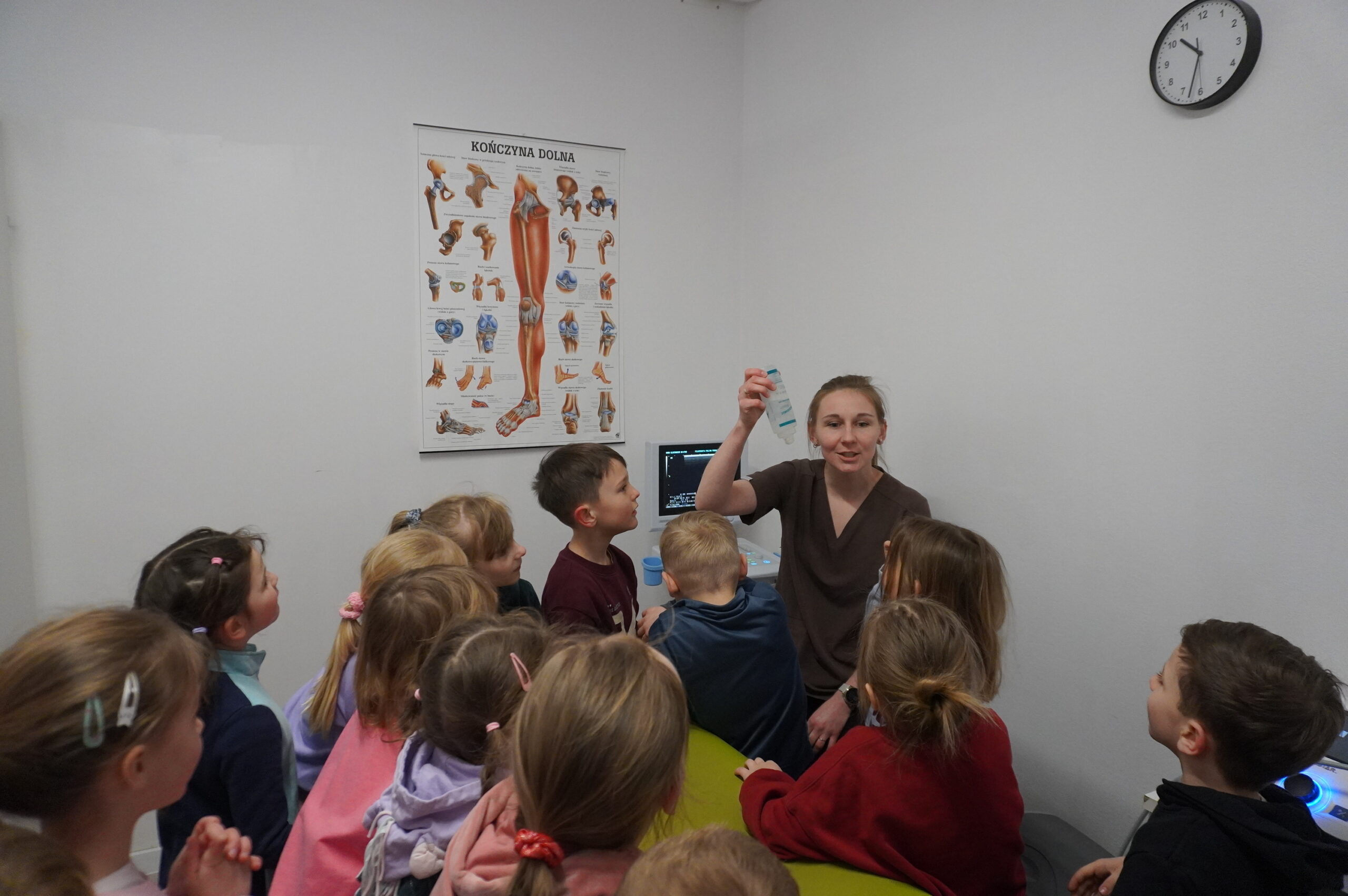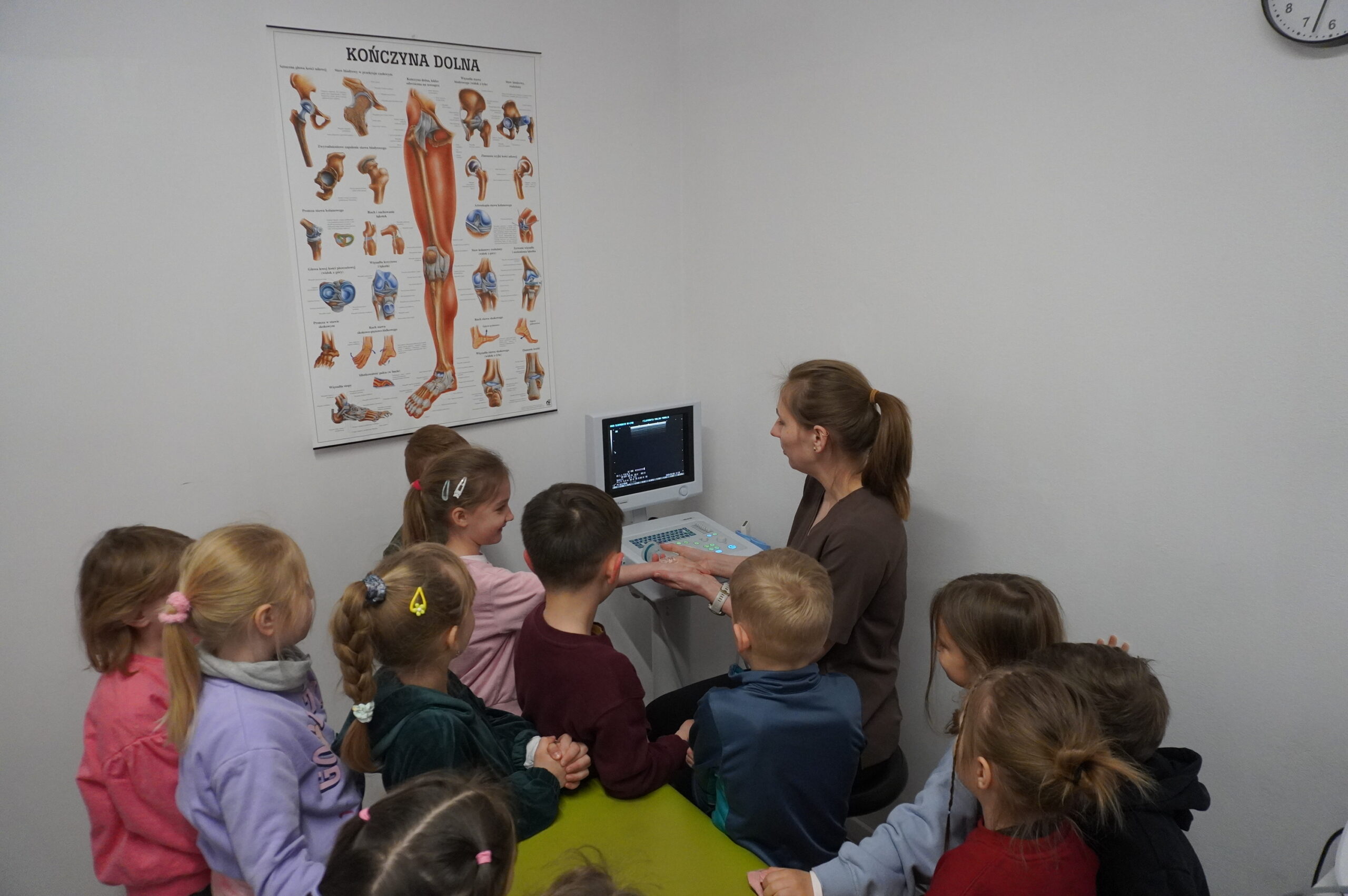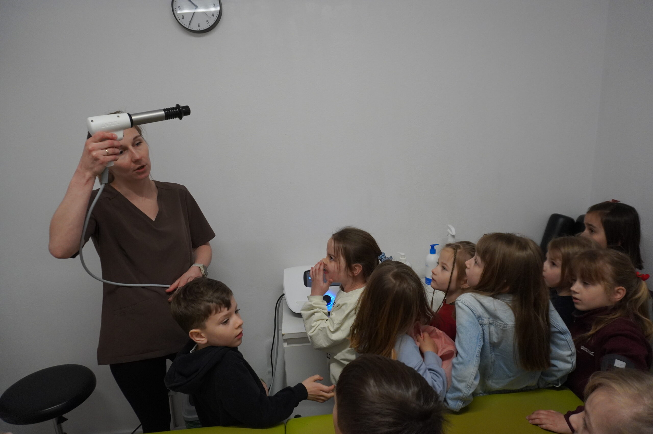 9 kwietnia przedszkolaki wybrały się na wycieczkę pieszą do gabinetu fizjoterapii. Celem wizyty było zapoznanie dzieci z zawodem fizjoterapeuty oraz kształtowanie nawyków dbania o zdrowie i prawidłową postawę ciała. Podczas spotkania Pani Paulina w ciekawy i dostosowany do wieku dzieci sposób opowiedziała o swojej pracy. Dzieci miały również okazję zobaczyć sprzęt wykorzystywany w gabinecie. Na koniec wizyty odbył się mały quiz. Dziękujemy Pani Paulinie!
