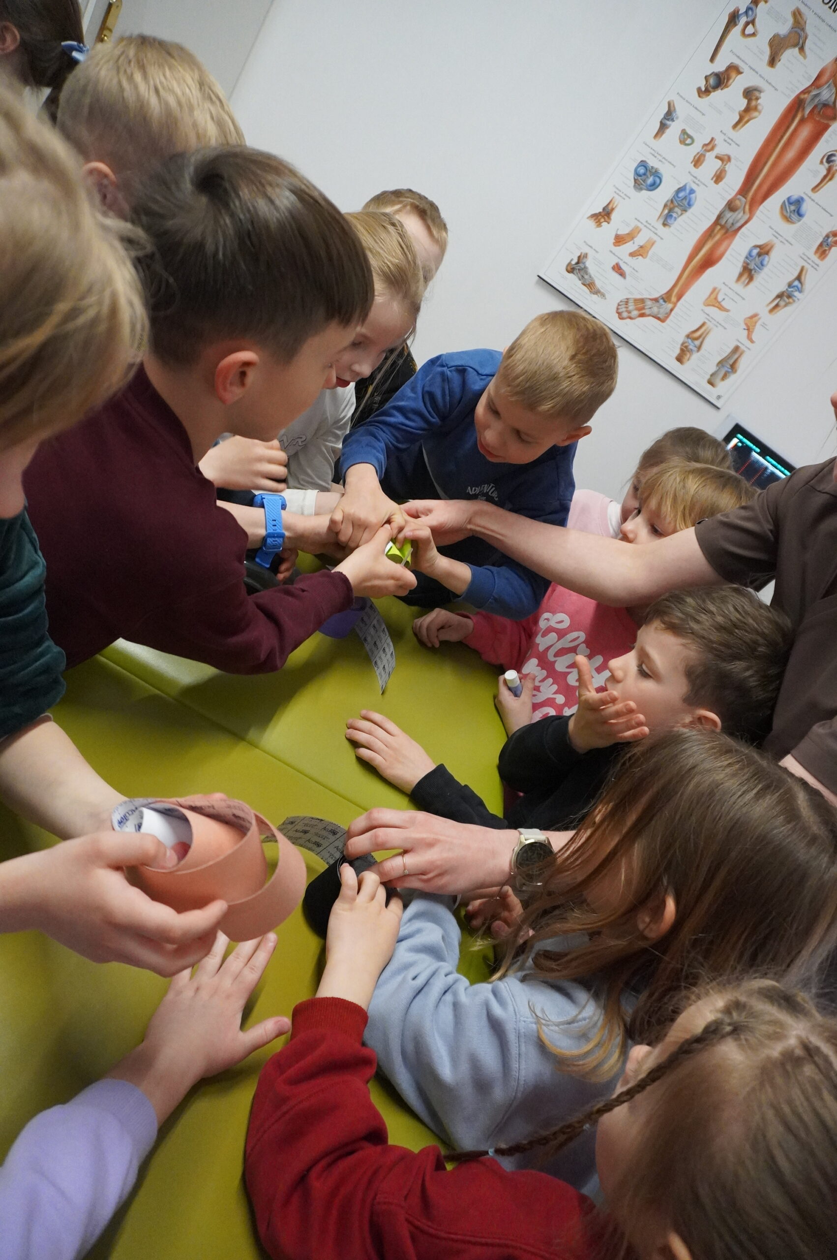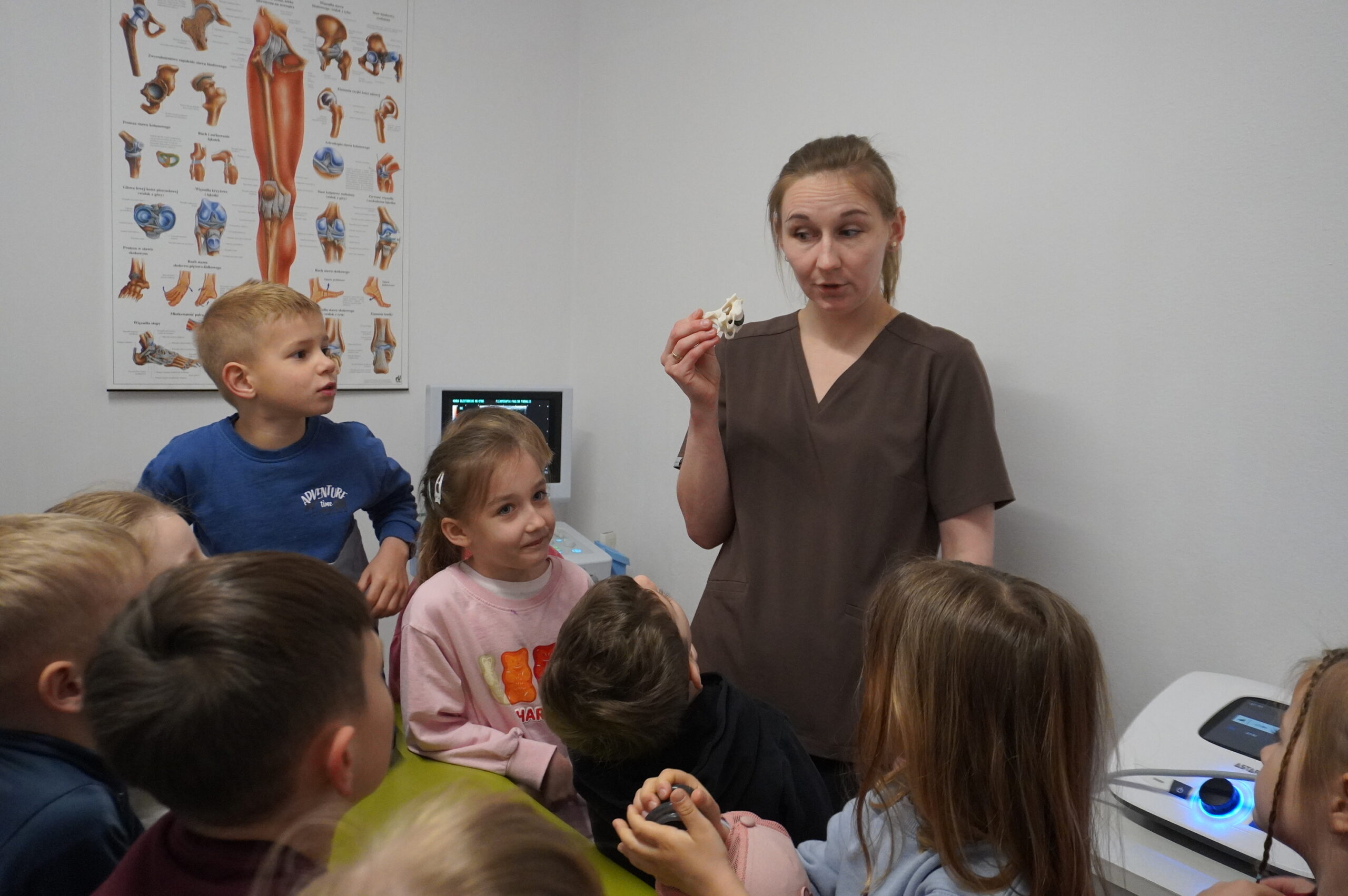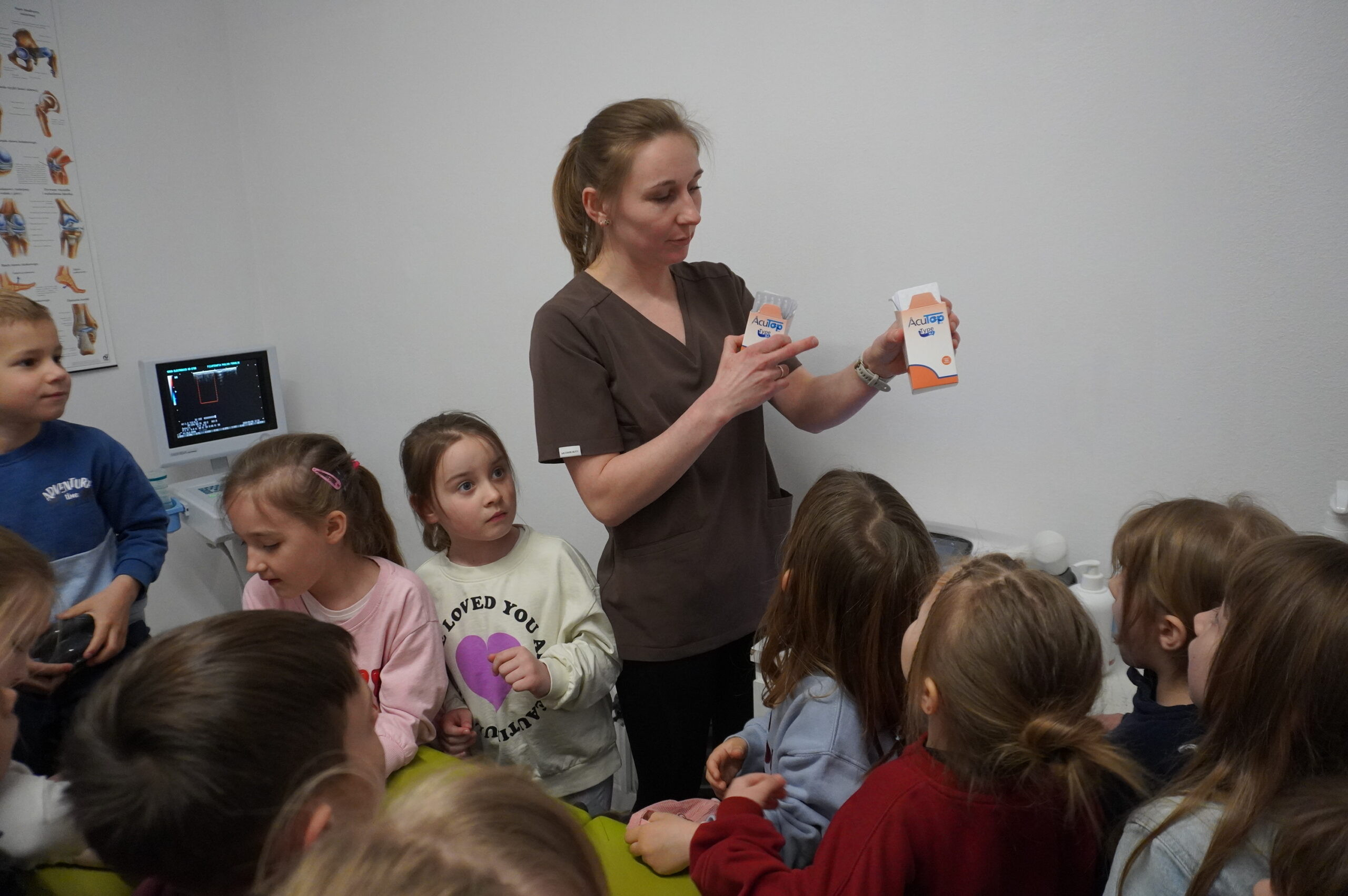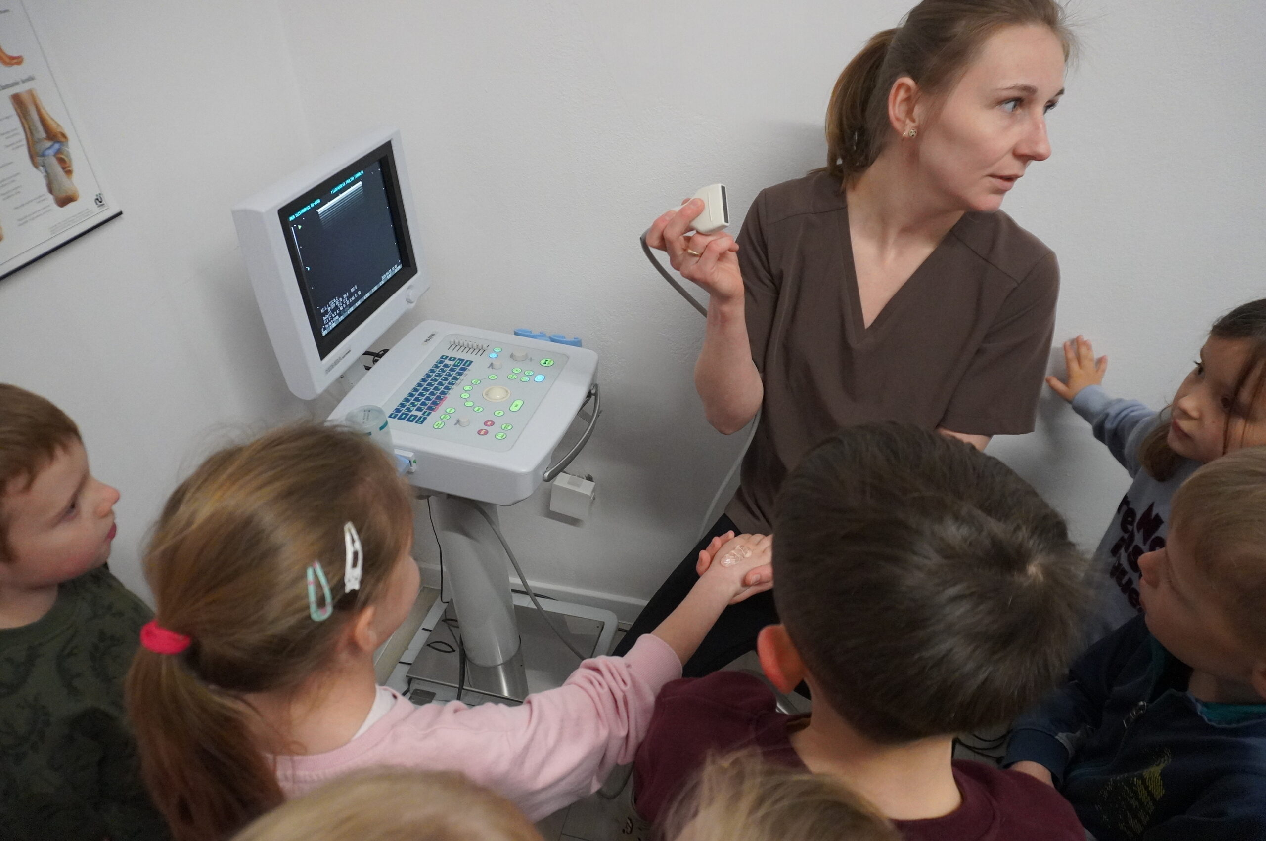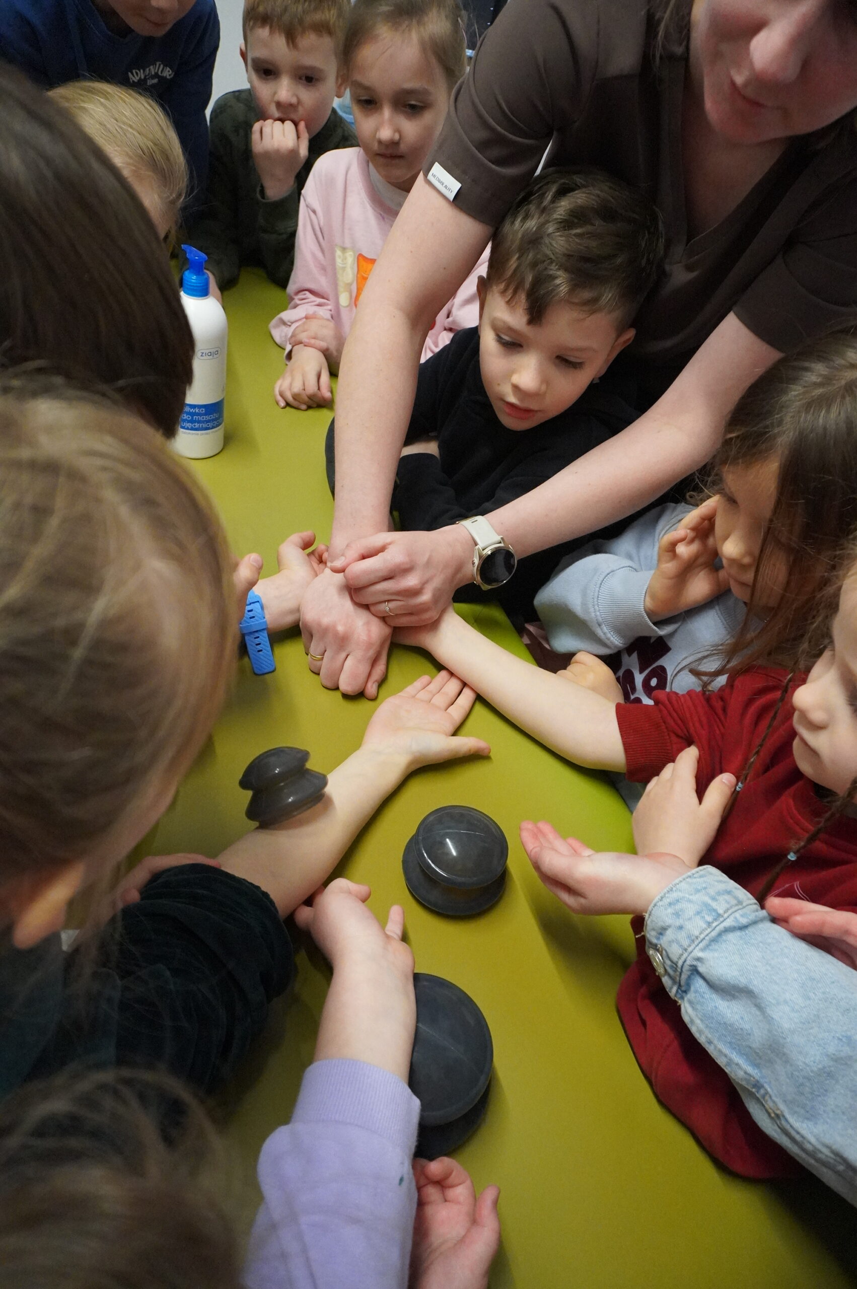 9 kwietnia przedszkolaki wybrały się na wycieczkę pieszą do gabinetu fizjoterapii. Celem wizyty było zapoznanie dzieci z zawodem fizjoterapeuty oraz kształtowanie nawyków dbania o zdrowie i prawidłową postawę ciała. Podczas spotkania Pani Paulina w ciekawy i dostosowany do wieku dzieci sposób opowiedziała o swojej pracy. Dzieci miały również okazję zobaczyć sprzęt wykorzystywany w gabinecie. Na koniec wizyty odbył się mały quiz. Dziękujemy Pani Paulinie!