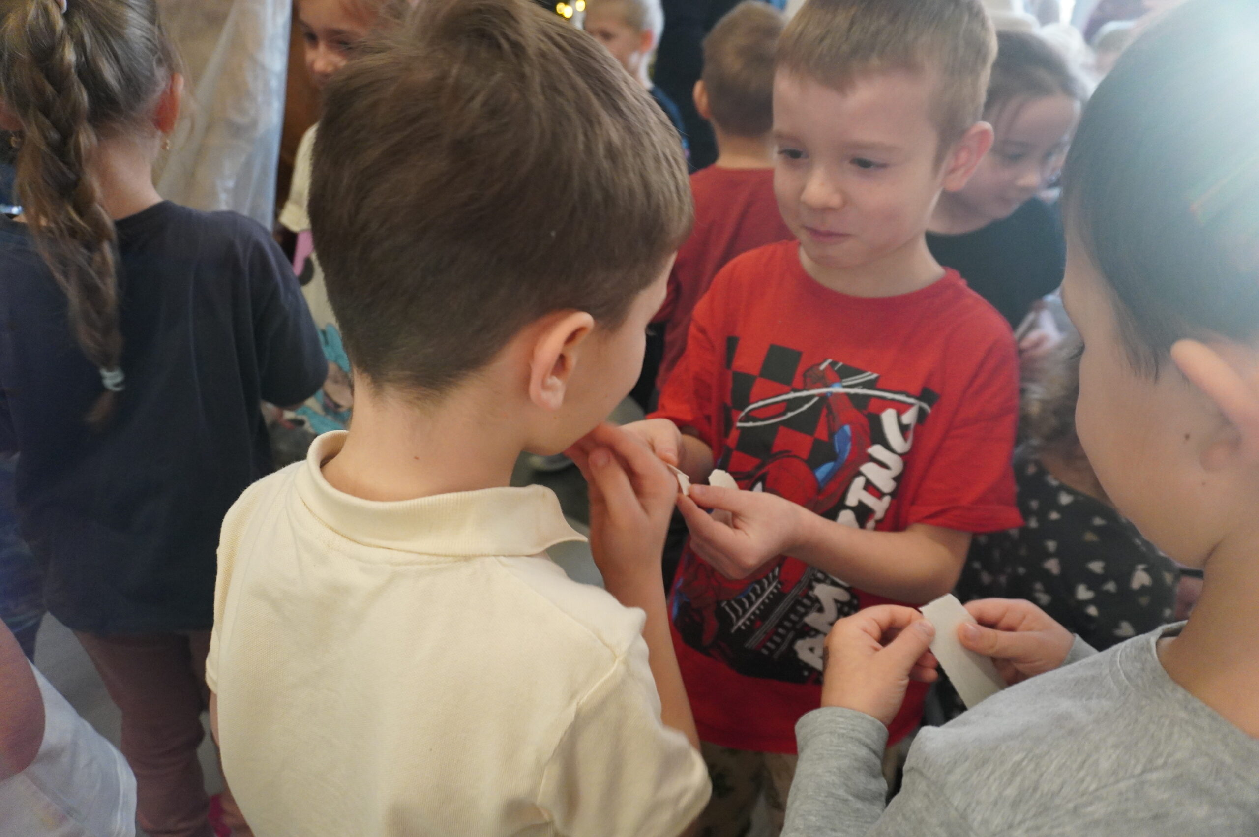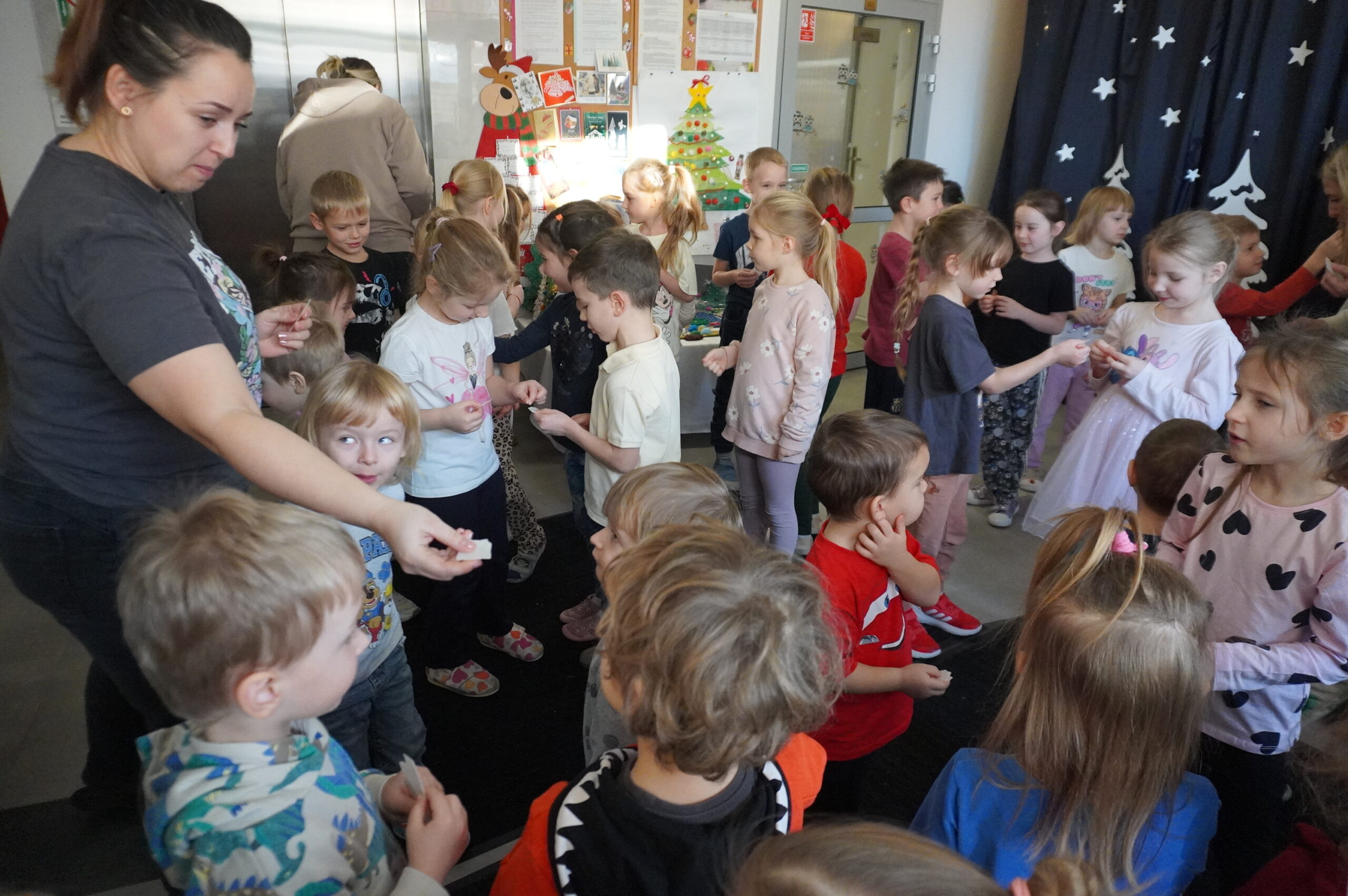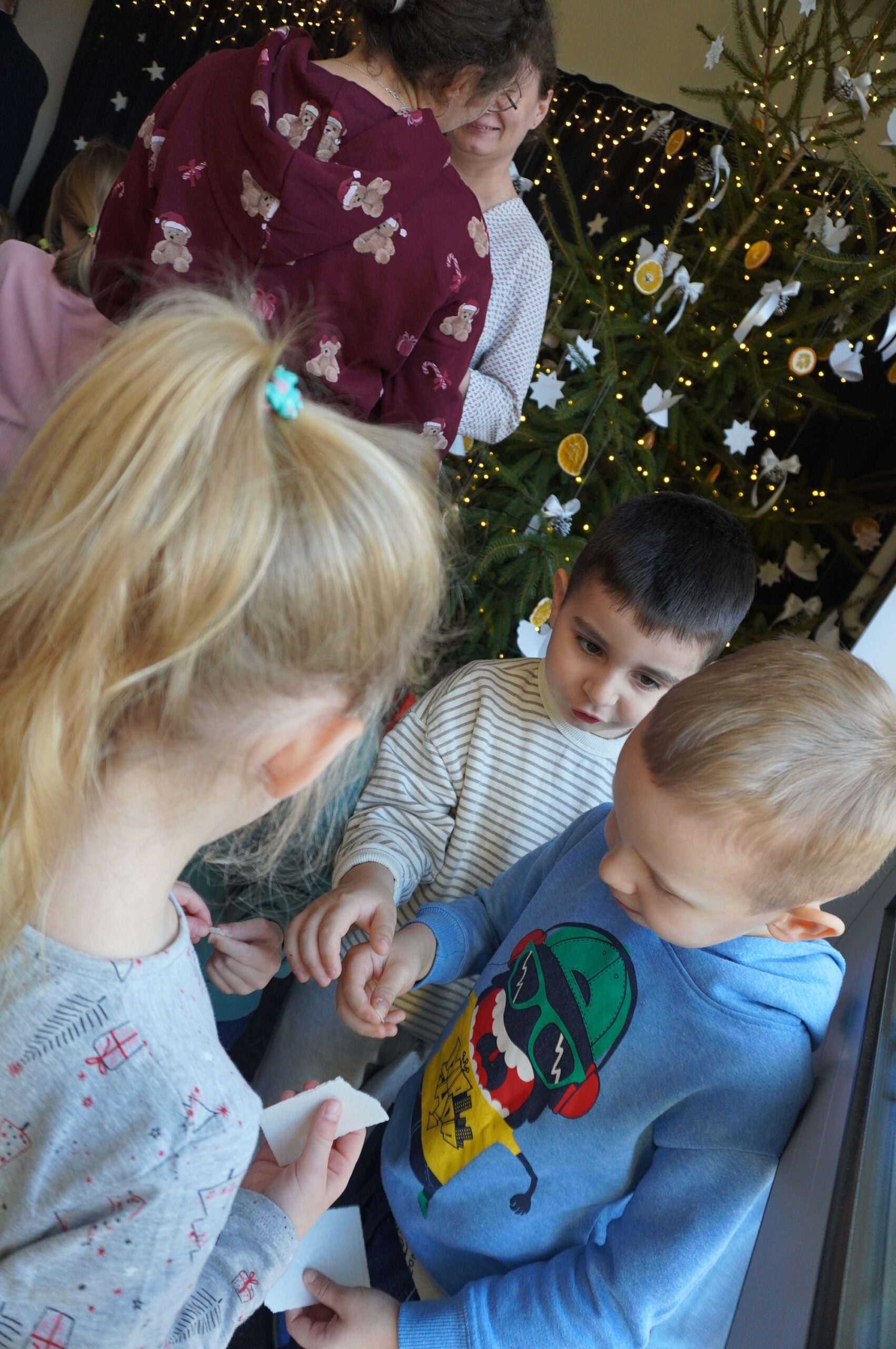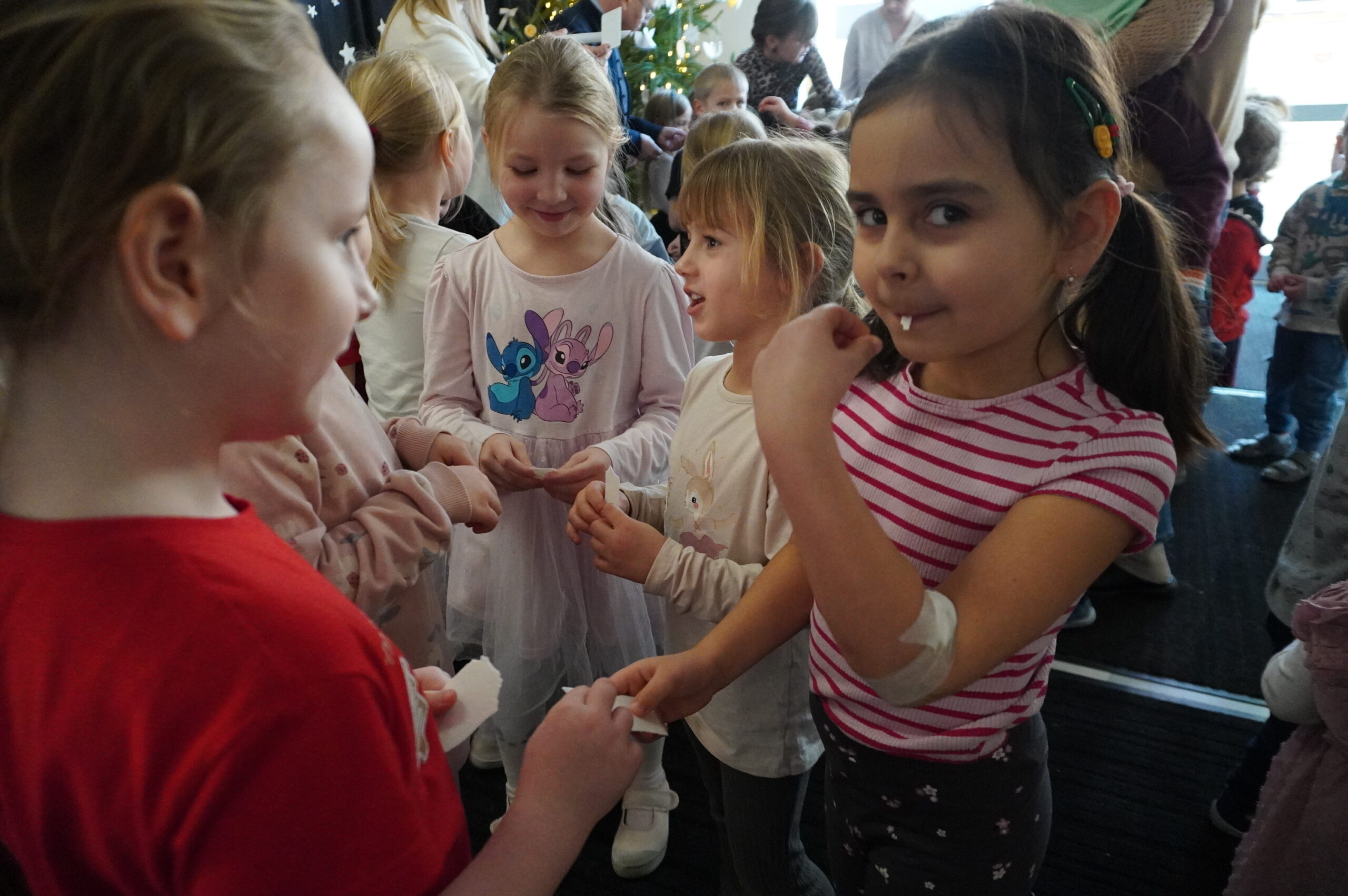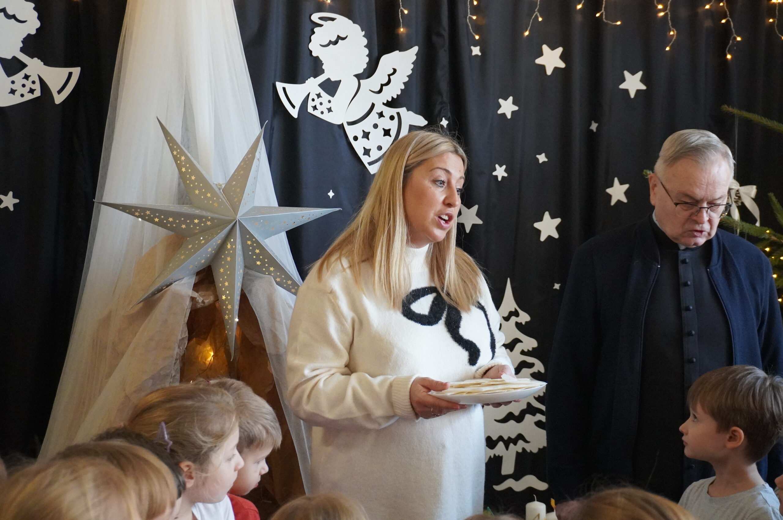 W przedświątecznej, pełnej ciepła atmosferze w naszym przedszkolu odbyło się spotkanie przy szopce bożonarodzeniowej podczas którego ksiądz Jarosław, dyrekcja, nauczyciele oraz dzieci wspólnie podzielili się opłatkiem. Był to czas refleksji, radości i wzajemnej życzliwości.